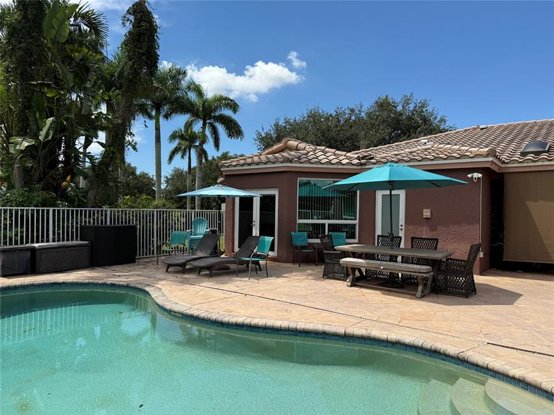 Nestled in a picturesque community of just 99 custom built homes and lined with oak trees, this spacious 4 bedrooms 3.5 bathroom corner builder acre lot pool home is the perfect blend of comfort, charm & location. Enjoy an open floor plan designed for both everyday living and entertaining. The home features impact windows & doors, updated bathroom with soaking tub, updated kitchen cabinets with quartz counters, new Kitchen Aid appliances, pantry with coffee bar, entertainment area with wet bar, LED lighting, surround sound inside and out, ring cameras and alarm, dual AC, rachio sprinkler, vaulted ceilings, covered patio & cabana bath, ideal for Florida’s indoor-outdoor lifestyle. Located near everything just minutes from beaches, Sawgrass Mall, Hard Rock & more.