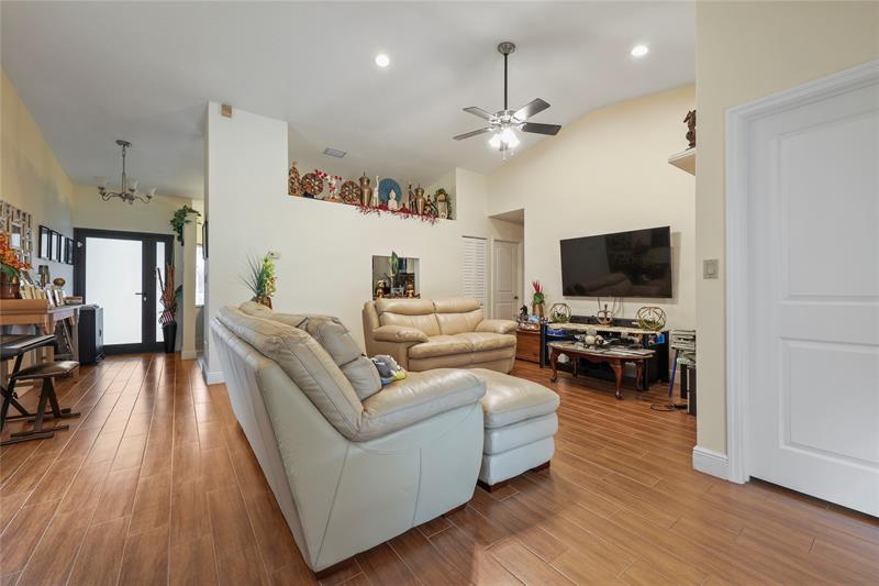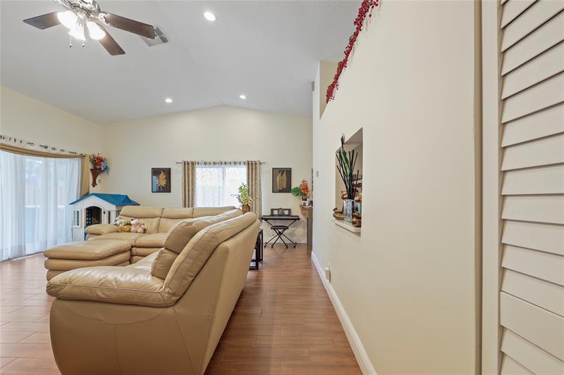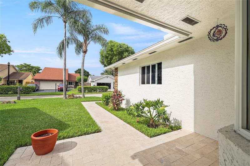 Welcome to this stunning 3-bed, 2-bath single family home that seamlessly blends comfort, style and peace of mind. Attention to detail and high-quality updates make this home truly move-in ready. The heart of the home features a beautifully updated kitchen complete with sleek quartz countertops, modern cabinetry, and stainless steel appliances-perfect for cooking and entertaining. Enjoy peace of mind with a new roof installed in 2022 and impact-resistant windows and doors throughout, offering safety and energy efficiency. The spacious master suite includes an updated en-suite bathroom. Updated tile flooring runs throughout the home. Outdoor spaces shine with travertine pavers on the front walkway and lanai, creating a clean and elegant look. Located near Walmart, Publix, and parks.