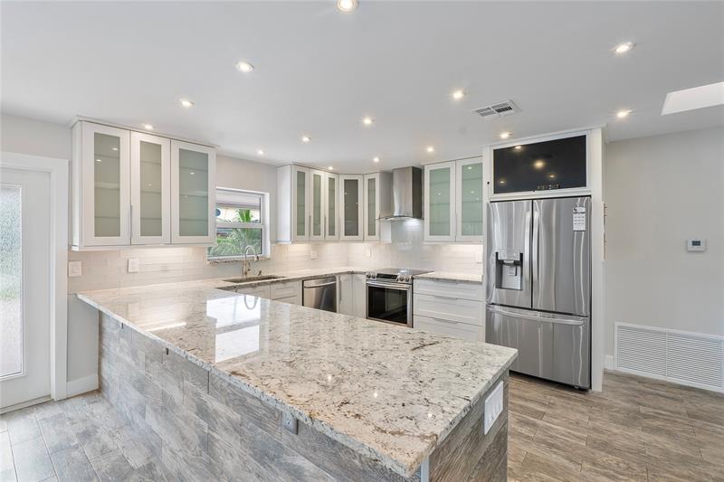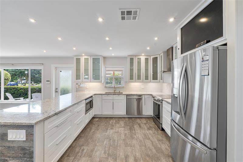 Experience this modern 4BR/3BA POOL home, 1-car garage, MINUTES to the BEACH & perfectly situated street, lined with waterfront, multi-million dollar homes! Fully updated residence offers the ideal blend of style & comfort! Two PRIMARY suites with a smart, split floor plan and open-concept living & dining spaces make this home a rare find! Fully updated kitchen w/custom cabinetry & SS appliances-a chef's dream! Open, airy & move-in ready! Modern baths, fixtures and flooring! Complete IMPACT windows/doors & freshly painted interior! Enjoy a private outdoor oasis w/ resort-style pool, chef's outdoor kitchen, outdoor shower & PVC privacy fencing- perfect for entertaining w/ family & friends! Nestled in a NO HOA community, this home blends modern touches w/warm features for everyday living!