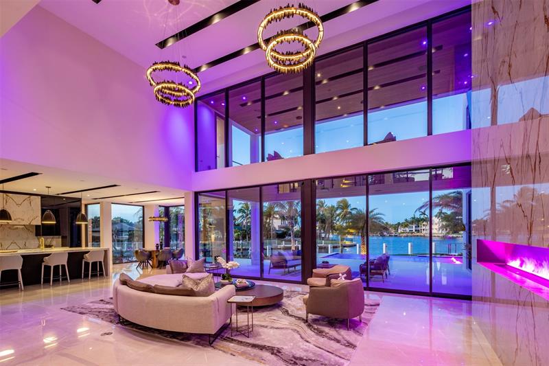 This 3 story custom masterpiece has it all. Passing through the oversized pivot door, you are greeted with double high ceilings & oversized glass sliders offering a picturesque long-water view. The homes design makes the most of the lot, providing breathtaking views from almost every space across all 3 floors. An elevator provides easy access & your garage has ceiling height to allow for a lift (up to 6 cars). A Control 4 system manages your full spectrum Color-Beam lights & concert quality sound. Your concrete dock offers 3 Power Pedestals & 140'+ straight to accommodate your yacht(s). A summer kitchen complete with smoker, ice maker, & fridge right outside your kitchen. A full-home Generac Solar system w/ 3 power banks provides further peace of mind. Home is wired for Lutron Shades.