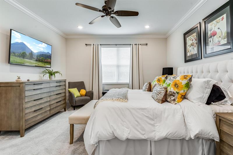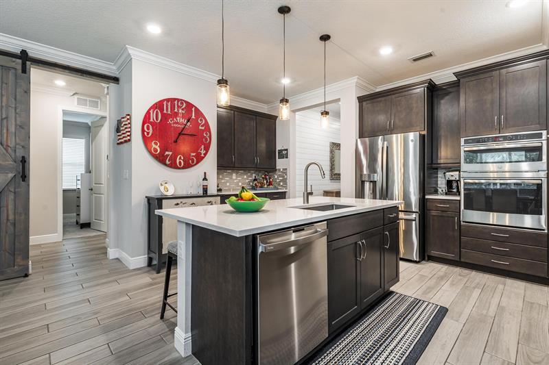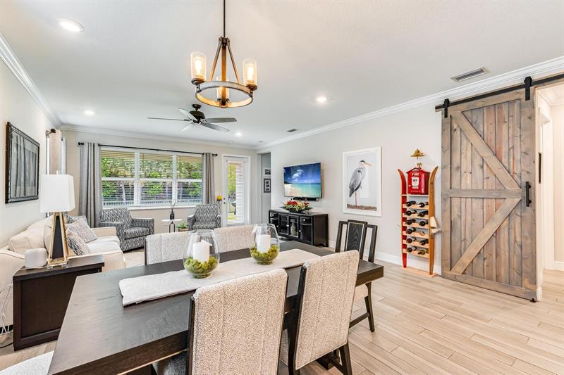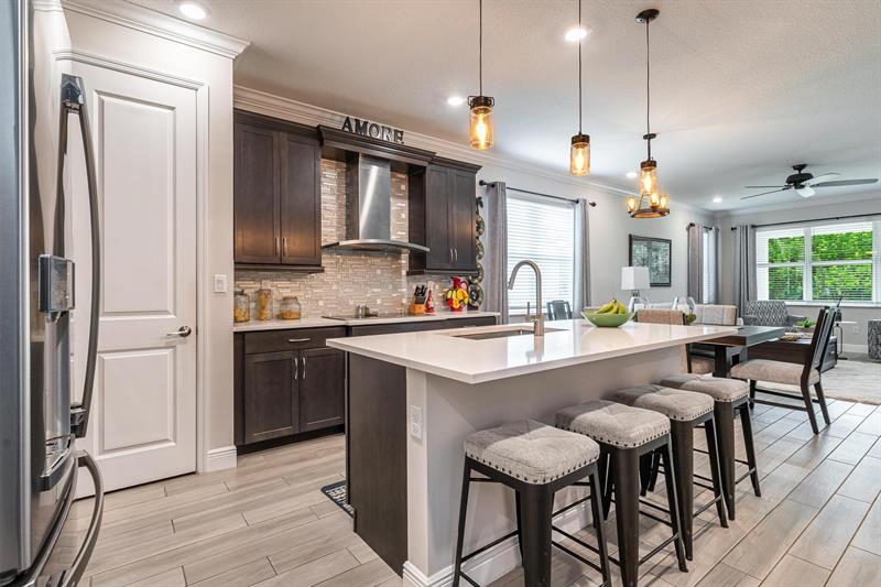 Rare WATERFRONT Pitoresco Model w/Craftsman Elevation in Sought-After Gated VELEIROS! 2/2+Bonus Rm (Convertible to 3rd Bdrm) & 2-Car Garage. Lushly Landscaped Front Porch (Perfect for Stargazing on a Balmy Evening) Opens to Foyer & Den. Ahead, Spacious Living Area w/Plank Tile, Hi-Hat Lights, Open Kitchen, GE Stainless Suite w/Wall Oven & Hood, Quartz Counters & Island, Pantry, Wood Cabinets. Sun-Soaked Great Room Overlooks Fenced Waterfront Yard w/Covered Paver Patio & Room for Pool. Owner Suite is a Hushed Sanctuary w/Ensuite Bath, Walk-in Closet. Barn Doors Open to Guest Quarters & Laundry Rm. Hurricane Impact Windows & Doors. Pets Welcome. Gym, Clubhouse, Pool, Playground, Onsite Mgmt. No worry of storm outages, same electrical grid as firehouse! Close to Beach, Supermarkets, Casino.