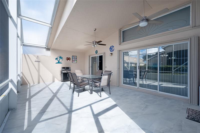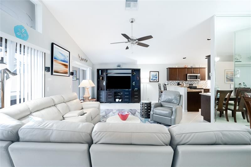 This beautifully maintained and upgraded 3 bedroom home offers comfortable stylish living in a vibrant 55+ community. A new roof, new outdoor tile on the lanai, and updated kitchen cabinets provide peace of mind and modern appeal. The open living area features vaulted ceilings, creating a bright and spacious setting perfect for relaxing or entertaining. Located in a highly sought-after active adult community, residents enjoy a wide array of entertainment, recreational facilities and clubs, ensuring there's always something to do and new friends to meet. Move-in ready and thoughtfully updated, this home is the ideal choice for enjoying the Florida lifestyl