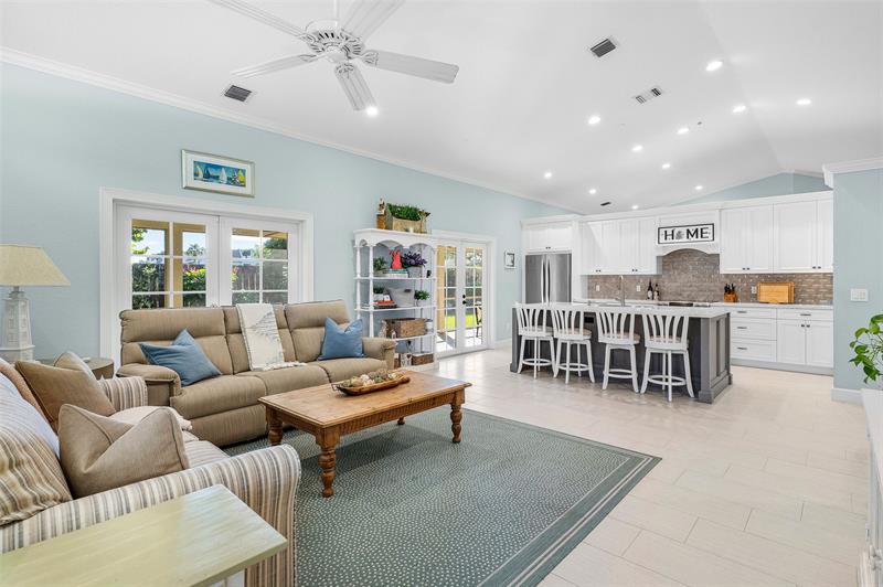 2855 Hampton Circle East is a beautifully renovated one-story home with a designer kitchen, impact doors and windows and a desirable split-bedroom layout. Tucked along the El Rio Canal on an oversized lot, this home invites you to live where the water calls. Cast a line for morning fishing or hop on your jet skis and glide to Lake Ida in under ten minutes. Adventure is literally in your backyard! A rare 3.5 car extended garage offers ample room for vehicles, a boat, or a golf cart.