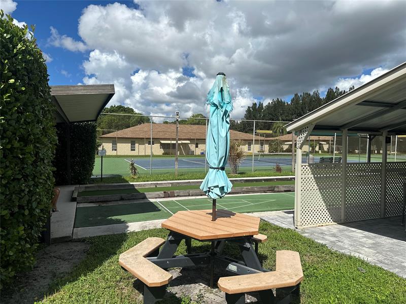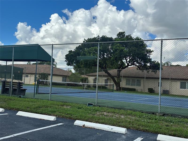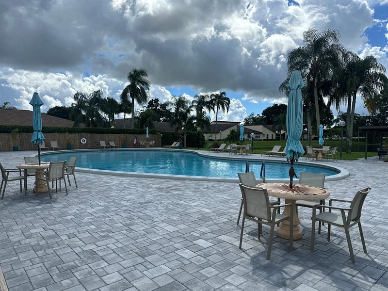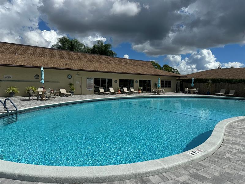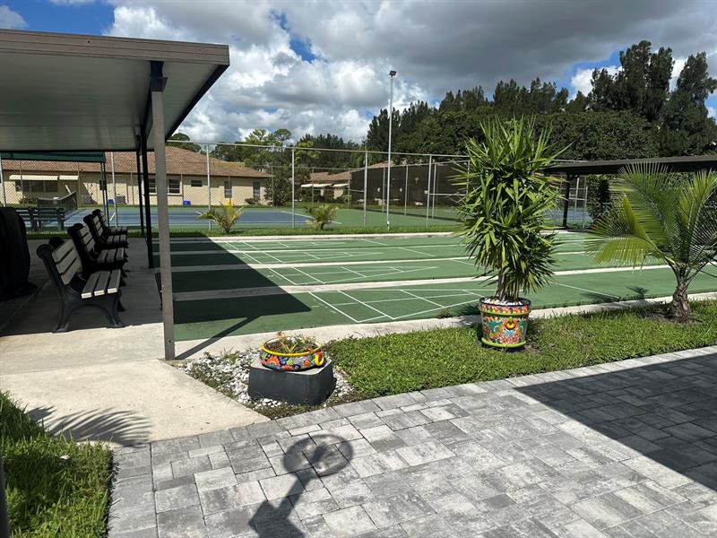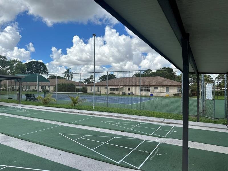 Welcome to High Point West 3, an active 55+ community with lots of amenities: Pool, tennis and shuffleboard courts and clubhouse. This charming corner California contemporary 2/2 has a den/office plus a covered courtyard entry patio with skylights. Spacious vaulted ceilings allow plenty of natural light with the new hurricane impact windows, a/c, flooring, washer & dryer and appliances. Master bedroom with huge walk-in plus full wall closet.