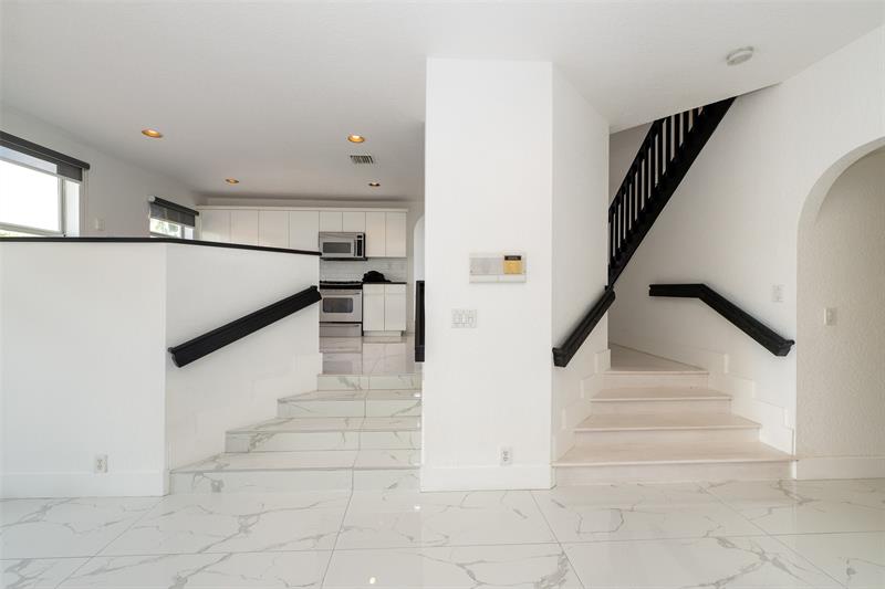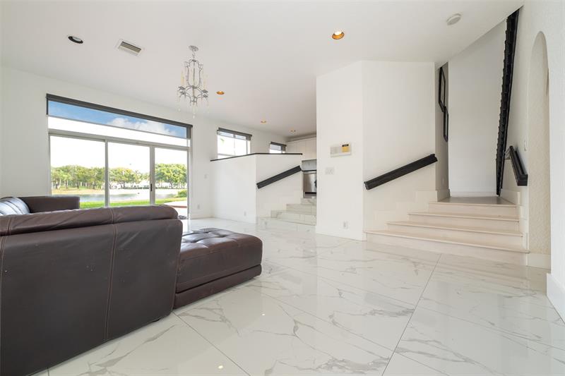 Resort-style living with lake views woven into everyday life; this 4 bed/3 bath residence captures sweeping water views, creating a bright, calming backdrop throughout the home. All bedrooms are thoughtfully positioned upstairs, keeping the main level open and effortless for living and entertaining. The primary suite feels like a private sanctuary, complete with a spa-inspired bath featuring a soaking tub, glass-enclosed shower, sleek floating vanities, and modern finishes. The private outdoor space invites slow mornings and sunset wind-downs by the water. A 2-car garage adds convenience and storage. Doral Isles is known for its guard-gated entry and resort style amenities that include pool, fitness facilities, and sports courts—an elevated community lifestyle in the heart of Doral.