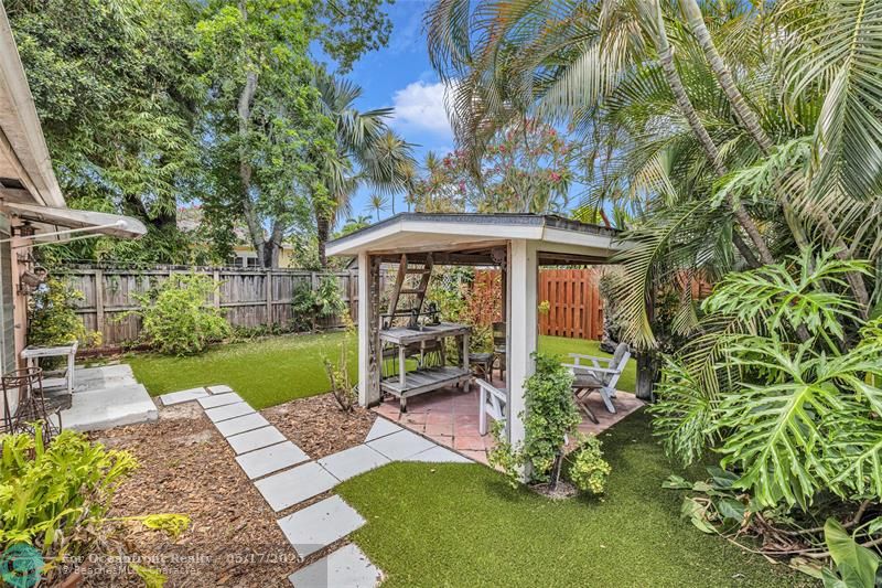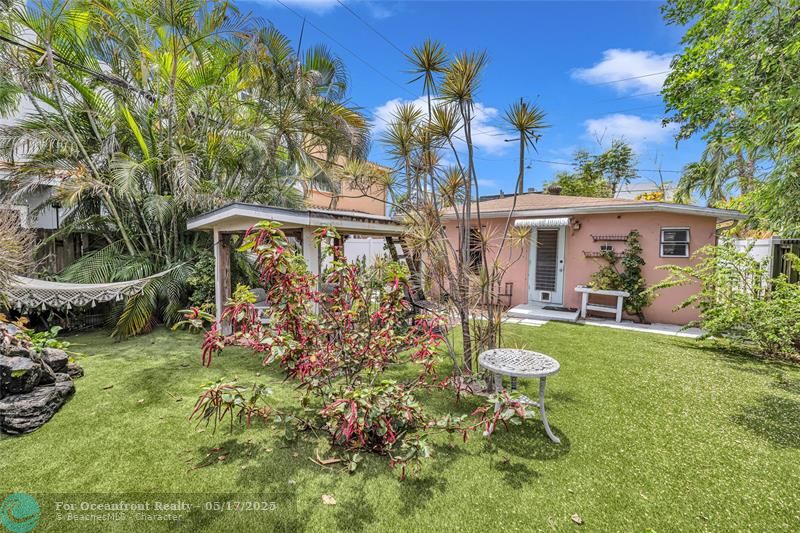 In the heart of Victoria Park, this unique cottage is a hidden treasure amidst lush greenery, a serene lily pond with a waterfall, and a delightful gazebo. Ideal as a pied-à -terre, art, or photo studio. Featuring a 2020 roof, updated electrical (2022), and a tankless water heater, blending vintage allure with modern conveniences. Cuban mosaic tile floors and spacious closets for charm and practicality. A separate utility closet includes a stack washer/dryer. A budget-friendly option in a neighborhood where the average price exceeds $1.5M—just blocks to the Iceplex, pickleball, ice skating, sports fields, and live entertainment venues. The Brightline Train and Fort Lauderdale Airport are nearby. Victoria Park is cherished for its wide sidewalks, parks, tree canopy, and access to Las Olas.