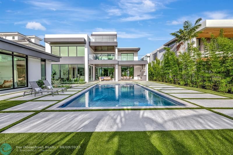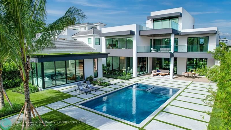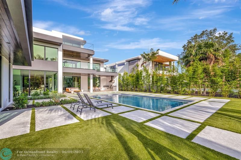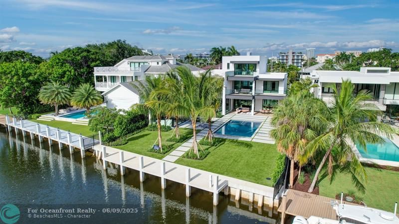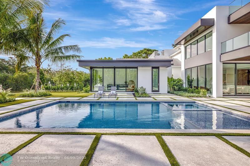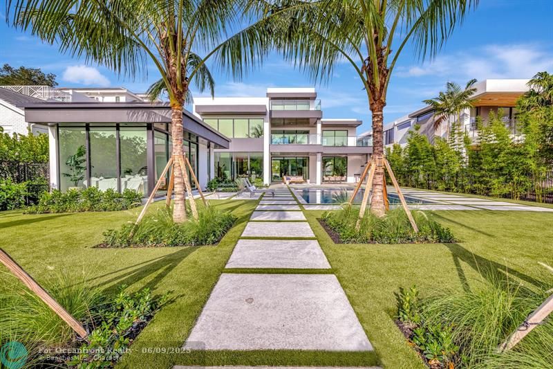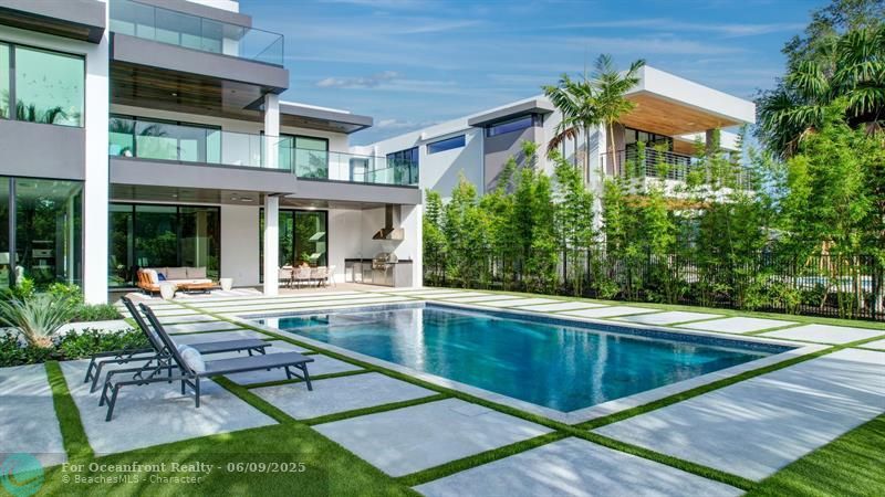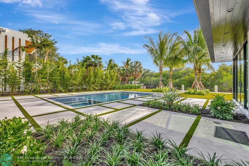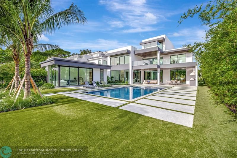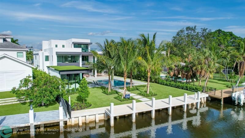 Extraordinary & unique waterfront residence newly completed by Gulf Building & move-in ready! Enjoy rare large 14,443 sf property with peace & tranquility of park-like setting on wide waterway, allows privacy to pool area & residence. Views overlook waterway, mangroves & park. Enjoy close by Anne Beck park & Las Olas. Villa Stranahan offers highly innovative 3 level floorplan plus a totally separate pool pavilion (perfect office/gym/guest house). Multiple indoor-outdoor entertaining areas, covered terrace & Summer kitchen. Many custom features. Chef's kitchen, butler's pantry, great room, separate media/club room, fabulous primary suite, separate closets. Entire 3rd level guest/entertaining area, elevator access & large private balcony. Newer concrete sea wall/dock.