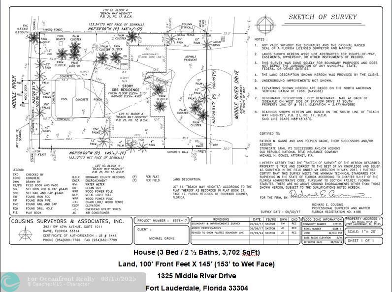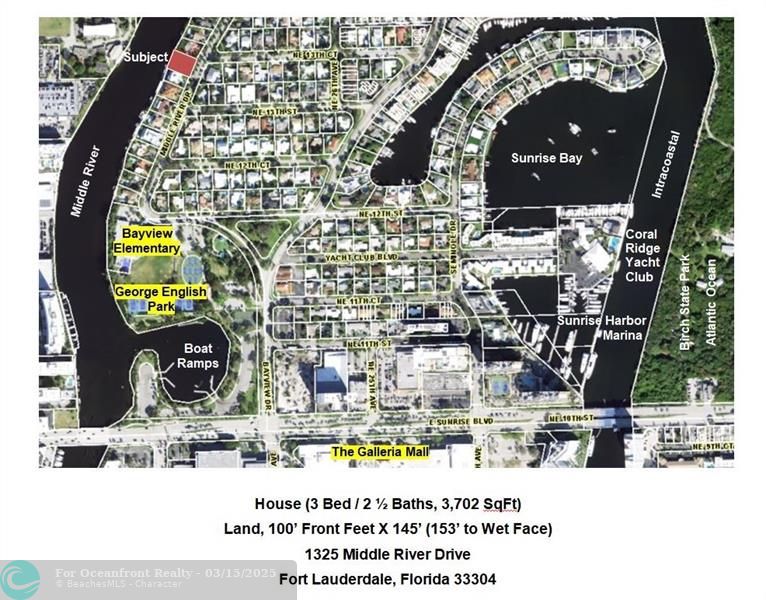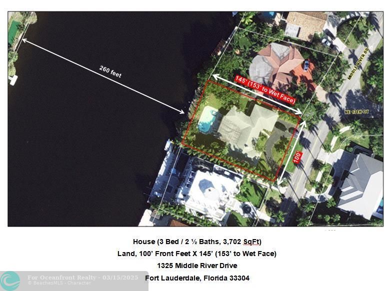 MIDDLE RIVER WATERFRONT. 100' X 145', 14,500 Square Foot Lot on 260' width of Middle River. Ocean access, subject to Sunrise bridge. Build your dream estate or remodel existing home that needs major renovations. Bayview School District. AS IS with no repairs. See survey and aerial photos attached. See 360 view in virtual tour.