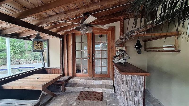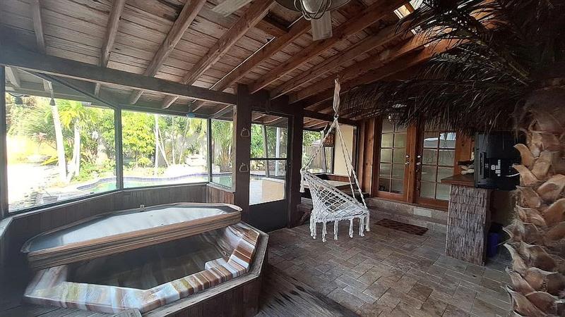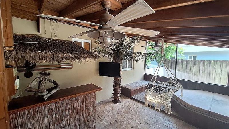 Enjoy Florida living at its finest with a covered screened patio, complete with a tiki bar and jacuzzi, overlooking a uniquely designed saltwater pool. The large lot provides ample off-street parking, abundant storage—including a sizable shed—and endless possibilities.