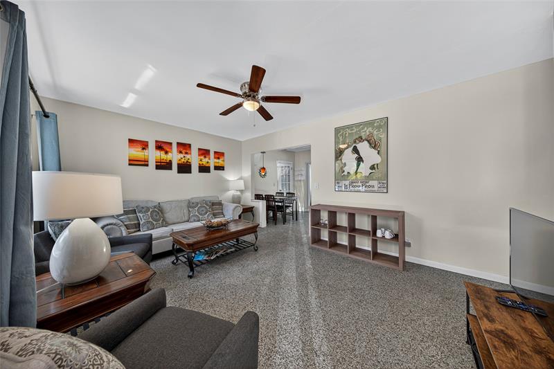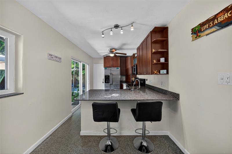 HIGHLY desired Poinsettia Heights neighborhood gem! Updated kitchen with granite counters, large pantry and snack counter facing the beautiful pool area. Primary suite offers renovated bathroom with walk-in shower and walk-in closet split from the other two bedrooms. Nicely updated guest bathroom has a tub and shower combination and large linen closet. Extra closet in the hallway. VERY good condition terrazo flooring throughout. Large heated pool with relaxing WATERFALL FEATURE and hot tub are in a VERY private backyard. Home offers a ton of natural light, a carport and a nice circular driveway made out of pavers. Ideal for a primary home, second home or short term rentals! No HOA. Close to the beach, downtown and 15 mins to the airport.