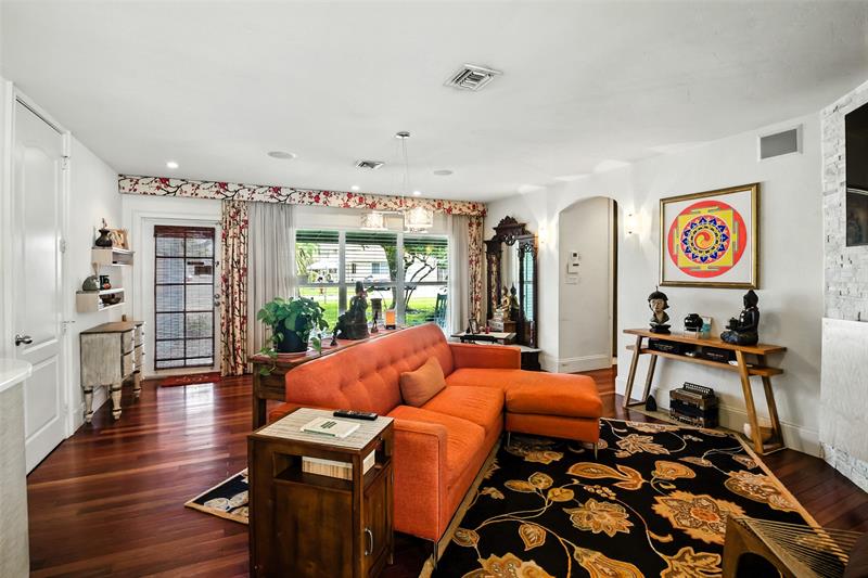 LOCATION, LOCATION, LOCATION!!!! This beautiful 2/2 LAKE FRONT home comes with a 1 car garage. It also features designer touches throughout and is located in the fabulous Poinsettia Heights neighborhood. Sit on your back patio and watch the gorgeous Florida sunsets while enjoying the spectacular water view. Some unique features include: An open sleek kitchen; REAL WOOD FLOORING throughout the main living areas; Solid 8 foot wood doors enhancing the feel of more space; an extra large laundry room with an amazing storage space; IMPACT WINDOWS AND DOORS; Water views from almost all rooms; Real Chicago brick driveway, patios and walkways; Lake fed sprinkler system; Newer exterior lighting; Minutes to the beach. Walk to restaurants and shops! Don't miss out, call today! Easy to show!