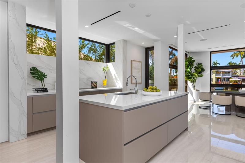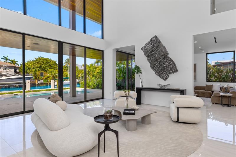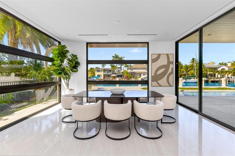 Luxurious three story waterfront estate newly constructed in Lauderdale Harbours. Envisioned by the renowned architect Robert Tuthill and erected in partnership with esteemed builder Jeff Hendricks, this ultra modern residence provides plenty of convertible living space. Seamless flow of indoor and outdoor entertainment environments makes transitioning guests simple. Appreciate the aesthetic 360-degree views of downtown Fort Lauderdale and the Intracoastal Waterways from the wrap around third floor balcony. Sited along deep water and on a wide canal with no fixed bridges, boaters can access open ocean in just 5 minutes. Close proximity to the airport, fine dining, Lauderdale Yacht Club, and the beach. Other features include: 6/7 bedrooms, resort style pool, loggia, and large