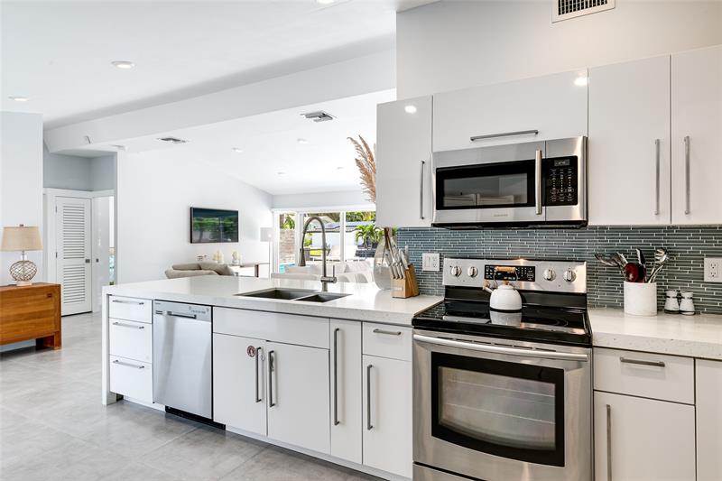 Welcome to Gill Isles! This beautifully remodeled 3-bed 2-bath home offers direct ocean access with a 65-foot seawall and 40-foot dock, plus, an oversized saltwater pool. Step inside and you’ll find a bright, open-concept layout with vaulted ceilings and abundant natural light. The modern kitchen features Samsung stainless steel appliances, quartz countertops, a breakfast nook, triple-door pantry, and custom cabinetry. Large porcelain tile floors, LED recessed lighting, and custom window treatments add to the sophisticated aesthetic. Equipped with impact windows and doors. Perfectly positioned in one of Fort Lauderdale’s most desirable boating communities, just minutes from downtown, Las Olas, and the Fort Lauderdale International Airport.