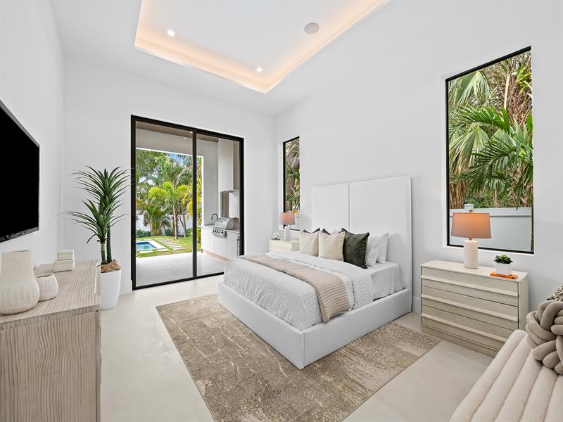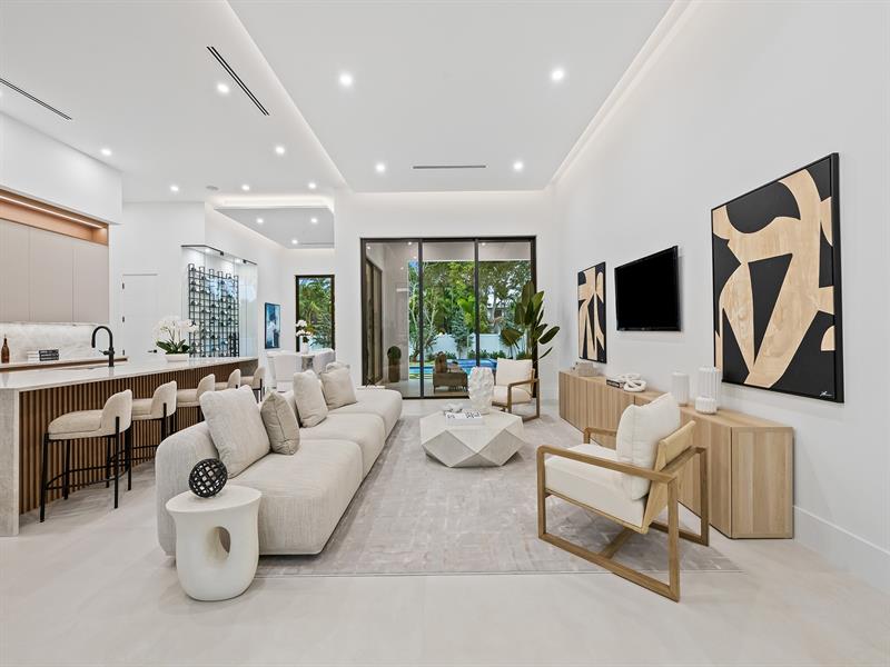 NEW CONSTRUCTION BY MSK HOMES | Designed by SILVANA BORGES | The Pinnacle of Poinsettia Heights | Coveted Street | 10,000+ Sq ft Lot | 1 story, Soaring 13'-16’ ceilings thru out | 4,042 total sq ft. Luminous open concept & high end finishes. Culinary kitchen with 12'+ center island, premium appliances & hidden walk-in pantry. The primary suite offers a large custom WIC w/ glass island & spa inspired bathrm outfitted with Kohler Anthem fixtures. 10' glass walls open to a covered lanai & summer kitchen with marine-grade cabinetry facing the pool, spa & waterfall framed in tropical landscaping. LED tray ceilings, Italian porcelain flooring, integrated speaker system, smart home features & elevated garage door for car lifts. Delivery April 2026. Customization available. Sq ft per Architect.