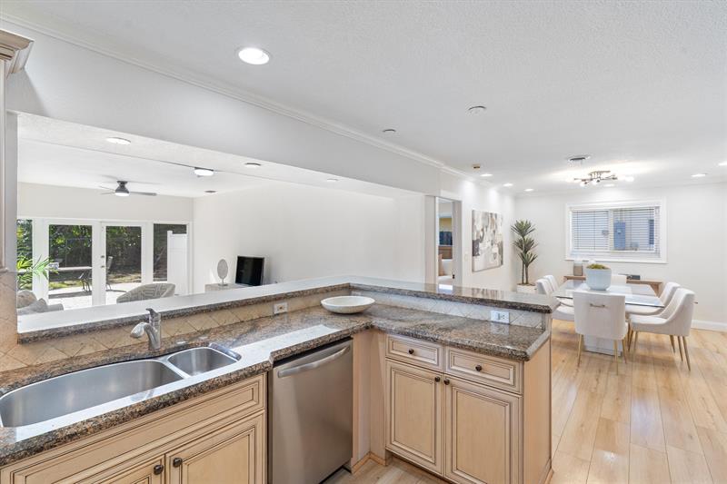 Beautifully maintained 3/2 home on an oversized, fully fenced corner lot with a sparkling pool and impact windows. Features a split floor plan, natural gas stove, tankless gas water heater, and energy-efficient upgrades. The kitchen includes custom cabinetry, bar-height seating, high-end appliances, and a built-in wine chiller. Interior highlights: custom blinds, dimmer switches, interior laundry, new fans, and updated dining lighting. Exterior perks include gated side access for a boat or trailer, separate irrigation system, storage shed, and an oversized 1-car garage. Located in a desirable neighborhood with no HOA, this home offers flexibility, character, and thoughtful features throughout.