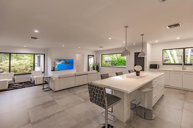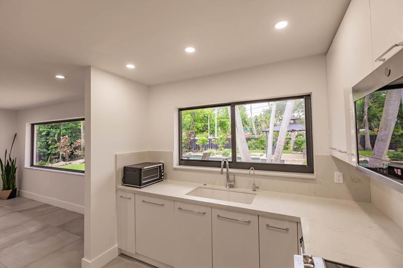 Beautiful pool home in sought after Coral Ridge. Recently updated. Quality Porcelanosa flooring throughout including the garage. Fully fenced private backyard, renovated kitchen with 10 foot quartz center island and combined living area. Full size 2-car garage. Outside shower. Large impact windows and doors bring the lush landscaping in. Top rated private and public schools (including Bayview Elementary).