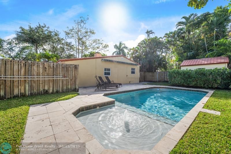 Victoria Park residence is ideally situated near the water in the desirable NE section of the neighborhood. The home has been remodeled, featuring an updated kitchen with granite countertops and high-end fixtures, a double wall oven. The guest bathroom boasts striking floor-to-ceiling mosaic tile. Exterior highlights include impact windows, a Chicago brick driveway and patio, a large, fenced yard on both side of the house with in-ground pool, and a storage shed. This property offers convenient access to the Galleria Mall, restaurants, the Gateway movie theater, highly rated schools, very close to the beach.