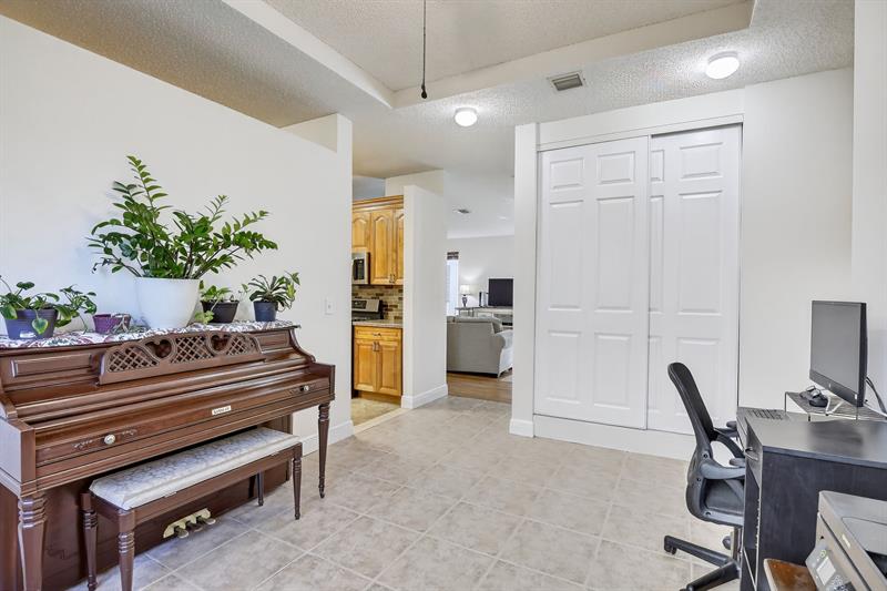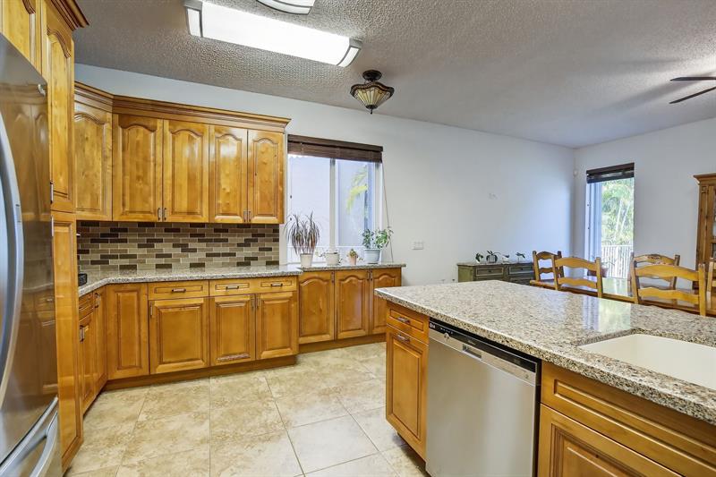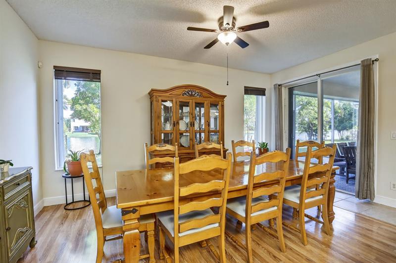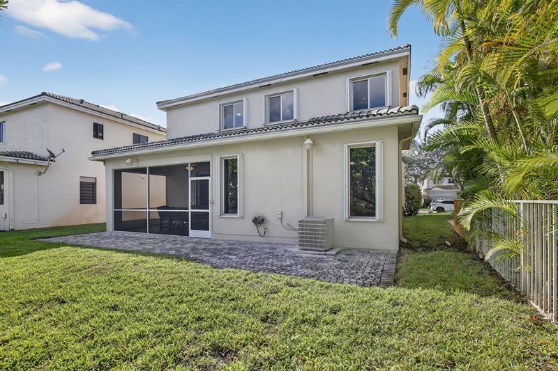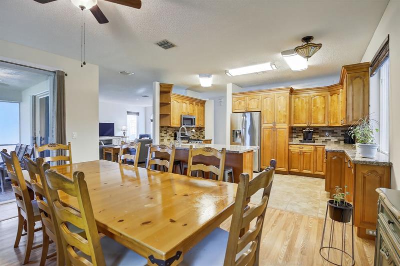 Rare DelMar Model in Laguna Isles! Beautifully updated 5 bed 3.5 bath, 2-sty home with over 2,500 sqft in sought-after Laguna Isles. This unique model offers a side-load garage and a builder-optioned addition, adding 2 extra bedrooms and a full bath for a spacious, flexible layout. The upgraded kitchen features crowned wood cabinets, granite counters, stainless appliances, and natural gas cooking and water heater. The dining room and primary bedroom showcase tray ceilings, and large windows fill the home with natural light. Enjoy wood and tile floors throughout, updated baths, and a freshly painted interior. Outdoor highlights include a screened, covered patio, paver brick driveway and patio, plus accordion shutters. A rare opportunity to own one of Laguna Isles’ most desirable floor plans