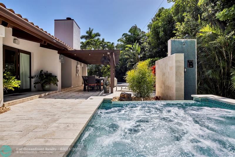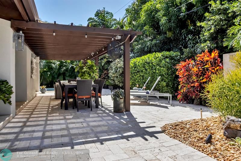 Welcome to Dolphin Palms, a tropical villa just three blocks from the beach on a quiet, palm-lined street in the charming Dolphin Isles neighborhood. This 4 bed, 3.5 bath residence offers a thoughtfully-designed floor plan with sunny exposures throughout. A private patio welcomes you into a spacious living and dining area. The modern kitchen boasts state of the art appliances. Two bedrooms have ensuite baths and outdoor access. A large, beautifully-appointed family room under soaring ceilings has a wood-burning fireplace framed by French doors which lead to a lushly landscaped back yard where you’ll find a pergola covered patio, heated pool, in-ground spa, two outdoor showers and the ambiance of a 5-star resort. Located just three blocks from the beach and one block from Birch State Park.