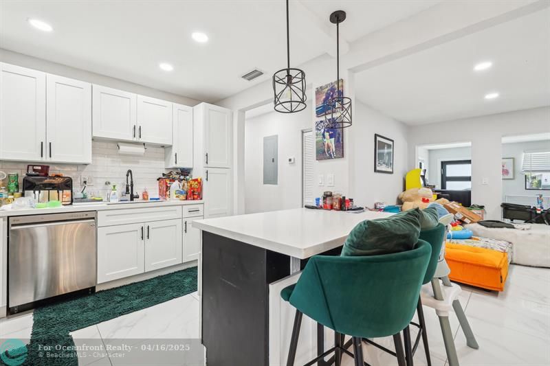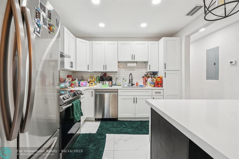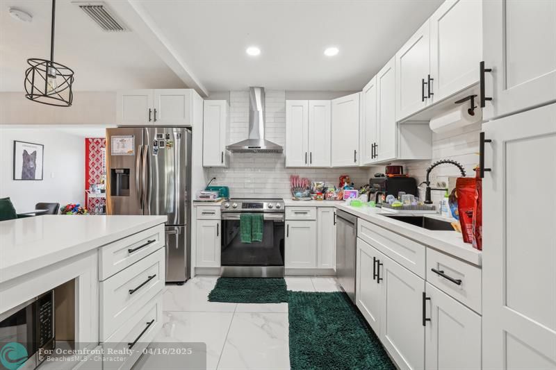 Inside, enjoy bright open living spaces, high end tile flooring, recessed lighting, and a sleek kitchen with quartz countertops, soft close shaker cabinets, island storage, and stainless steel appliances. Both bathrooms offer a spa-like feel with frameless glass showers and modern vanities.
