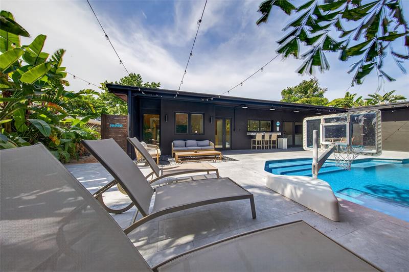 Perched on a ridge and surrounded by lush tropical greenery, this stylish 4 bed, 3 bath Mid-Century Modern pool home sits in the desirable Harbour Inlet—just a short walk to Fort Lauderdale’s best beach! Designed for indoor-outdoor living, the home features floor-to-ceiling glass with panoramic views of the new heated pool, marble paver patio, and professionally manicured grounds! The bright, open layout includes multiple seating areas, vaulted ceilings, a central kitchen w/ pass-through to the pool area, and two spacious primary suites on opposite sides—perfect for privacy or guests. Outdoors, enjoy privacy via lush hedges & fencing, generous patio space, and storage sheds. Whether full-time living or a vacation escape, this home offers the ideal blend of style, comfort, and location!