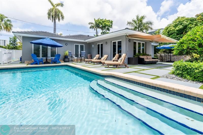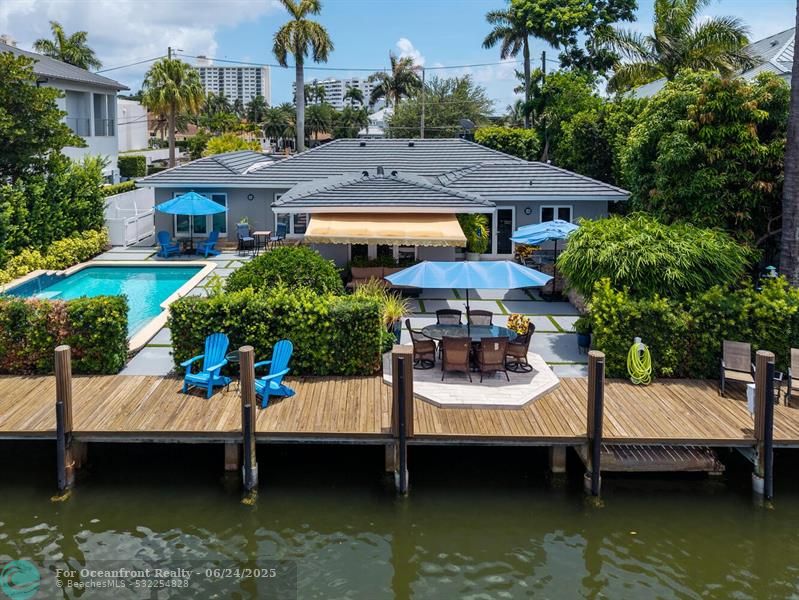 Finally, the home you have been looking for, single story beauty! Prestigious Seven Isles, the only guard patrolled neighborhood in the Las Olas Isles. 87' of prime deepwater dockage, no fixed bridges, ocean access. Impeccably maintained, impact windows/doors, roof 2016, water heater 2021, A/C 2024, generator, 4/3, formal living room with fireplace, large formal dining room. Cooks kitchen with 2021 Viking appliances opening to family room. Fourth bedroom is a separate guest suite & private bath. Tropical landscaping provides privacy to enjoy your summer kitchen and heated pool, retractable awning for extra shade. Circular driveway providing ample parking. Minutes, to the beach, downtown, shops, restaurants, airport and major highways. Come live the Las Olas Lifestyle!