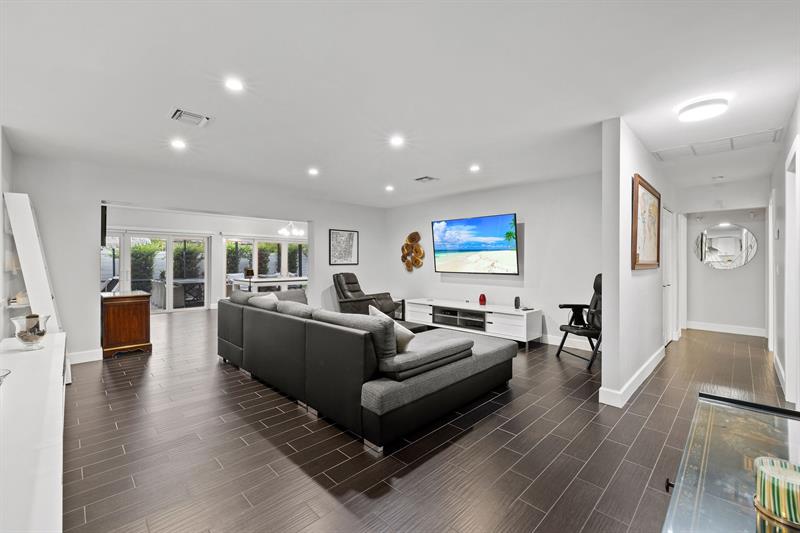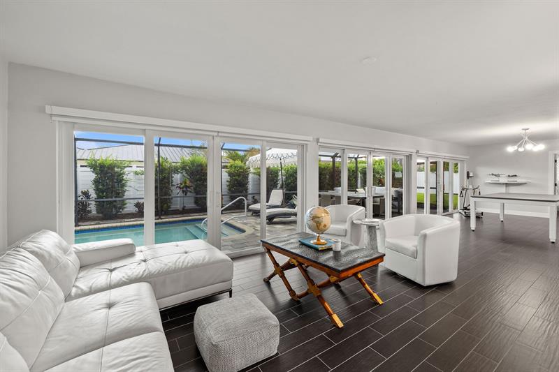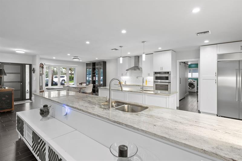 Substantially updated 3345 square foot, 4 bedroom, 3 full bathroom, 2 car garage Coral Ridge Country Club pool home. It is very conducive to living comfortably and or entertaining lavishly. Large circular driveway can accommodate many guest vehicles and the interior open living space concept with three parallel pavilions in the kitchen, 2 with their own sinks and one with a pot filler over the glass top stove. Additional built in wet bar in the living room. Large pantry and generous interior laundry space just off of the kitchen. Two large bathroom bathroom spaces and one additional full cabana bathroom with pool access. Foam insulated ceiling in the attic leaves a generous and reasonably temperate crawl space providing great additional storage. Back up generator powers the whole house.