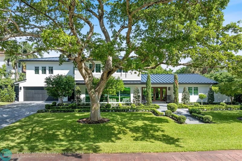 This stunning residence blends timeless farmhouse charm w/sleek modern design in the heart of Fort Lauderdale’s prestigious Coral Ridge community. Thoughtfully crafted w/clean architectural lines, natural textures, & warm finishes, the home exudes both sophistication & comfort. Expansive open living spaces flow seamlessly w/soaring ceilings, wide-plank hardwood floors, & walls of glass filling the home w/natural light. The chef’s kitchen is a true centerpiece—featuring custom cabinetry, spacious island w/seating, & professional-grade appliances. The primary suite is a serene retreat w/a freestanding soaking tub & generous walk-in closets. Outdoor living is elevated w/resort-style pool & covered lounge areas. Ideal location just minutes from beaches, shopping, dining, & Bayview Elementary!