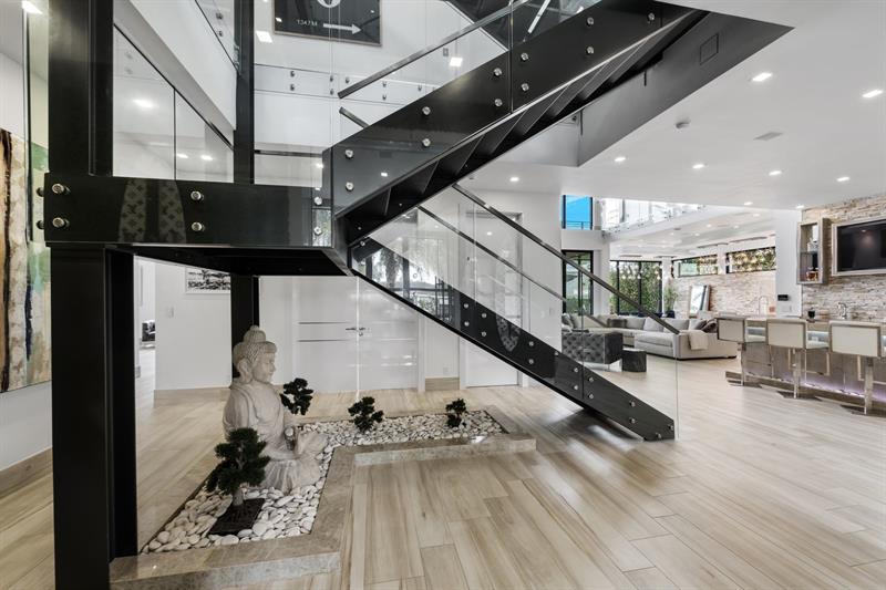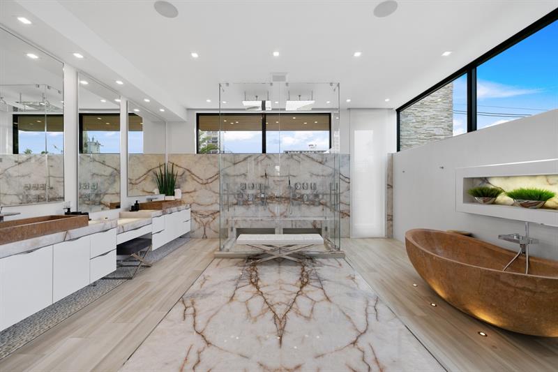 Located in guard house secured Seven Isles, this exceptional FULLY FURNISHED custom deep water residence offers the very best of modern sophistication & ultimate entertainer's floorplan. Located on a premium oversized property with 103ft concrete dock. Very best of Lutron home automation & security systems. Three level extraordinary floor plan includes elevator two primary suites (1st & 2nd level),Chef's kitchen, Subzero, Wolf, Hansgrobe & Toto, 350+ bottle wine cellar. Expansive bedroom suites & additional entertaining amenities include 3 fireplaces, theater, office, gym, loft area plus sky lounge, roof top putting green - high quality custom finishes throughout set this home apart! 3 bay garage & resort style East facing pool & separate Summer kitchen. Must be seen to be appreciated!