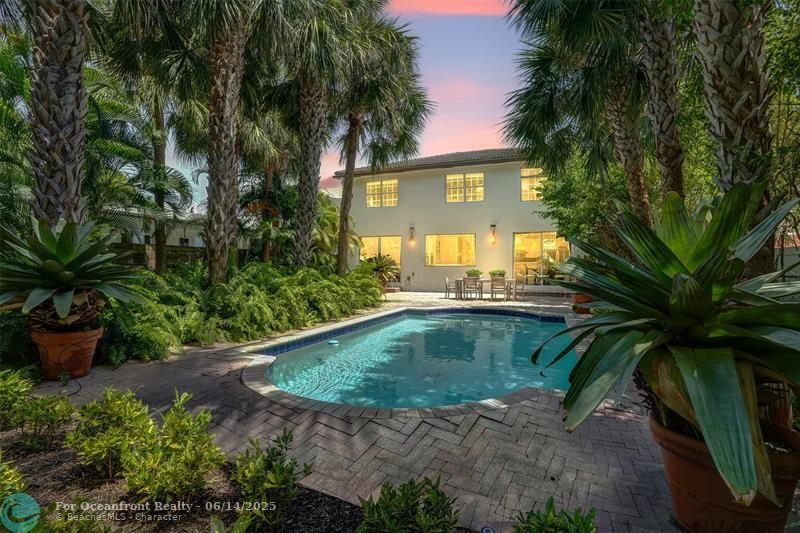 Step into this stunning Idlewyld beauty that exudes S. Florida luxury & living. As you enter this visual masterpiece you will be drawn to the 25’ ceilings & tropical feel of the home. 4 beds, 4 baths (1 BR, 1 BA down) w/ formal living & dining rms w/ windows overlooking the lush landscaping. Tile flooring on the diagonal on 1st floor & Southern Chestnut wood on 2nd. Kitchen w/ upgraded SS appliances incl. Viking gas stove. Family rm w/ floor-to-ceiling built-ins overlooking oversized & private backyard sanctuary. Paver pool area surrounded by custom landscaping & fenced for privacy…perfect for entertaining. 2nd floor features primary BR w/ walk-in closet & bath w/ jacuzzi tub & sep shower. 3 add. bedrooms w/ en suite baths. 2023 A/C's, 2015 gas water heater. This home is not to be missed!