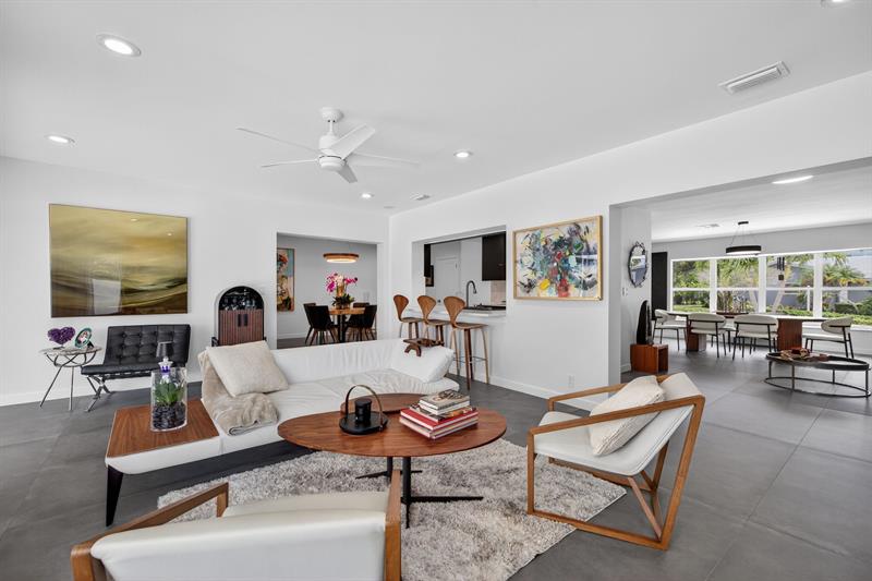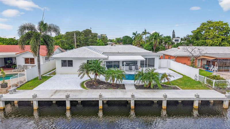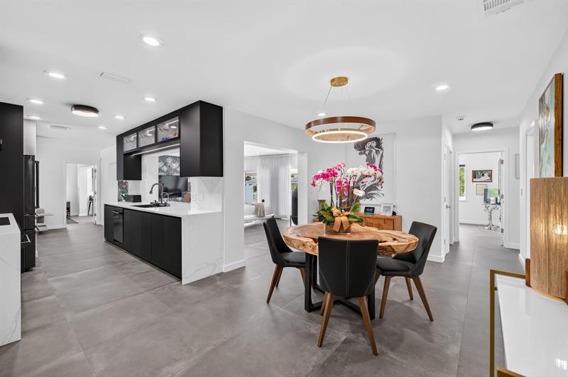 Nestled in The Landings, this fully renovated waterfront home has been meticulously crafted. From the striking chef’s kitchen with custom cabinetry, waterfall quartz counter, & top-tier ZLINE appliances, to the expansive open-living concept that seamlessly flows from one area to the next with an oversized slate grey porcelain tile. The primary bedroom features an en-suite bath, walk-in closet, & generous sitting area offering direct pool/water views through the impact sliding glass doors. 3 additional bedrooms & guest bath are positioned on the opposite wing of the home perfect for guests. The outdoor living experience is equally exceptional w/ brand-new pool, marble pool deck, concrete seawall & 75ft dock catering to the boating enthusiasts – offering ocean access w/1 fixed bridge.