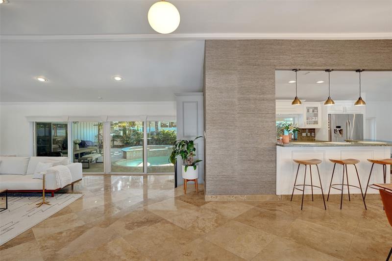 True 4 bedroom, 3 bath pool home in Old Coral Ridge neighborhood of East Fort Lauderdale. Bayview school district. Spectacular vaulted ceilings in Living room overlooking the pool. High ceilings in most rooms. Separate family room off the kitchen. True 2 car garage. Inside laundry. All Hurricane Impact windows and doors. Marble floors thruout. Major updates including updated electric and PVC plumbing (partial), New AC and 2017 roof. Large roof overhang for outdoor shade. Southern facing backyard for all day sun on the pool. Spacious yard. Pool recently done with new Diamonbrite. This is the one!