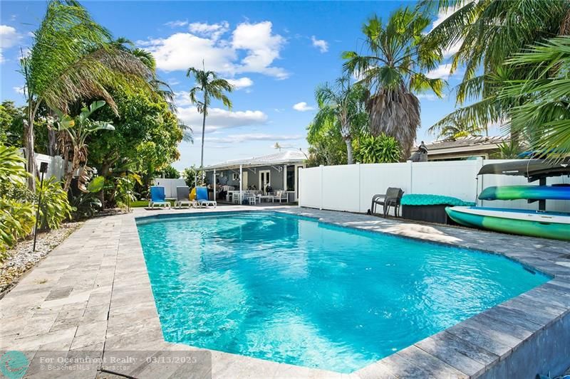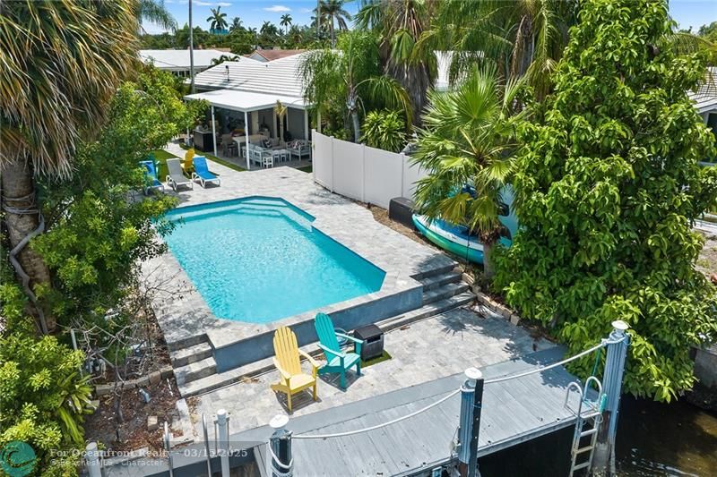 NEW PRICE! Discover the beauty of this remodeled Lake Estates gem! Featuring 3 spacious bedrooms & 3 full baths, this home is perfect for entertaining & out-of-town guests. Enjoy the convenience of 2 separate driveways, accommodating up to 10 vehicles + an attached 2-car garage. Recent upgrades include new roof (Oct 2020), brand-new A/C (Aug 2023), & brand-new washer/dryer (Sept 2023). Indoors, you'll find laundry room, versatile office/den, & hurricane impact glass throughout. Dive into your private pool w/ stunning water views! The open-concept design features a massive living room that flows into a gorgeous kitchen & custom bar area. Situated on an expansive corner lot w/ ocean access, & conveniently located close to the beach, shopping & entertainment. Don't miss this remarkable home!