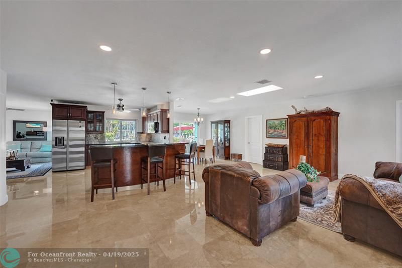 HUGE PRICE REDUCTION---CORAL RIDGE WATERFRONT HOME---NO FIXED BRIDGES---COMPLETELY REMODELED EXTERIOR---HUGE SIDE YARD offers endless possibilities for PLAYGROUND, MULTIPLE SPORTS ACTIVITIES, PUTTING GREEN, DOG RUN & so much more! A-RATED BAYVIEW ELEMENTARY SCHOOL. THE HOMES RECENTLY REFRESHED INTERIOR boasts Polished Marble & Wide-Plank Wood Floors. OPEN KITCHEN features large breakfast island, granite counters & stainless appliances. PRIMARY BEDROOM opens directly to RESORT LIKE SALTWATER POOL AREA with TRANQUIL WATER VIEWS. Primary Bath w/2-person soaking tub, walk-in shower & double vanity. ALL NEW ROOF, Redesigned Entry, Front Doors, Garage Door, Fence, Sprinkler System, Skylights, Travertine Marble Paver Driveway & Pool Area. HURRICANE IMPACT windows & doors. Rebuilt Seawall & Dock.
