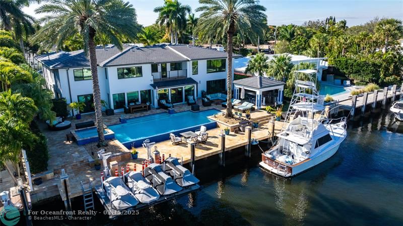 This is the Coral Ridge deep water estate that you have been searching for! This home has been completely remodeled with high impact glass, new flooring, new roof, high-end appliances, stucco, paint, and 12K pound lift on the dock. All of the systems in the home have been updated within the last 2 years including: full home generator, all A/Cs, pool equip., and tank-less gas water heaters. When you enter through the privacy gates you will find a modern home with almost 6,000 sq ft of air conditioned living space. Step outside to an oasis that includes a spectacular custom pool with spa and infinity edge, cbs construction pavilion that houses the summer kitchen and bar area for dining, and a concrete dock all surrounded and covered with gorgeous marble and landscaping!