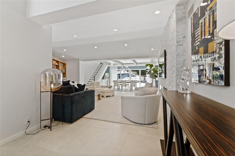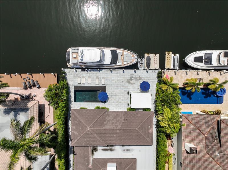 This 5 bedroom 4.5 bath plus 2 offices/den estate sits on 80’ of waterfront with no fixed bridges and ocean access. Extensive renovation in 2012. Impact windows and doors. Marble flooring throughout living areas and wood flooring in bedrooms. Grand open living spaces with vaulted ceilings in the living room and the family room has beautiful wood beamed ceilings and wet bar. Gourmet kitchen features quartz countertops, wood cabinetry, stainless steel appliances and center island. Second level master wing boats large master suite, expansive walk-in closet with built- ins, spa like bath and office/sitting area. Spacious secondary bedrooms. Outdoor living with gazebo, saltwater pool, and tranquil water views. Property located at the end of Seven Isles Drive with little thru traffic.