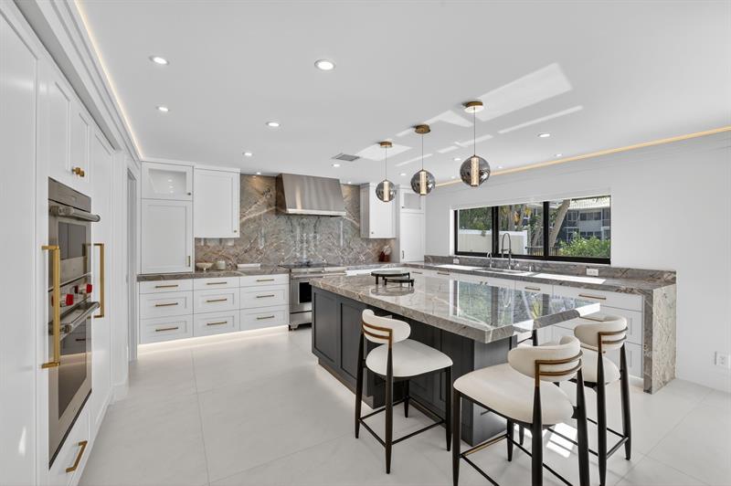 Absolute Masterpiece! Once-in-a-lifetime opportunity to own your brand-new waterfront coastal modern home rebuilt from the concrete up in sought-after Bermuda Riviera in East Fort Lauderdale. This 4BD/4.5B residence showcases exceptional craftsmanship exuding high-end finishes throughout. Taj Mahal stone accents welcome you at the entry. Chef’s kitchen featuring Wolf induction range, Sub-Zero fridge/freezer, custom hood, under-counter lighting, and butler’s pantry. Downstairs bonus room ideal for office/bedroom/flex space. Fully equipped smart home with security system. Spacious bedrooms with spa-inspired baths and illuminated mirrors. Outdoor waterfront oasis with newly built pool featuring lighting and fountains, updated plumbing, and brand-new dock—perfect for relaxing and entertaining!