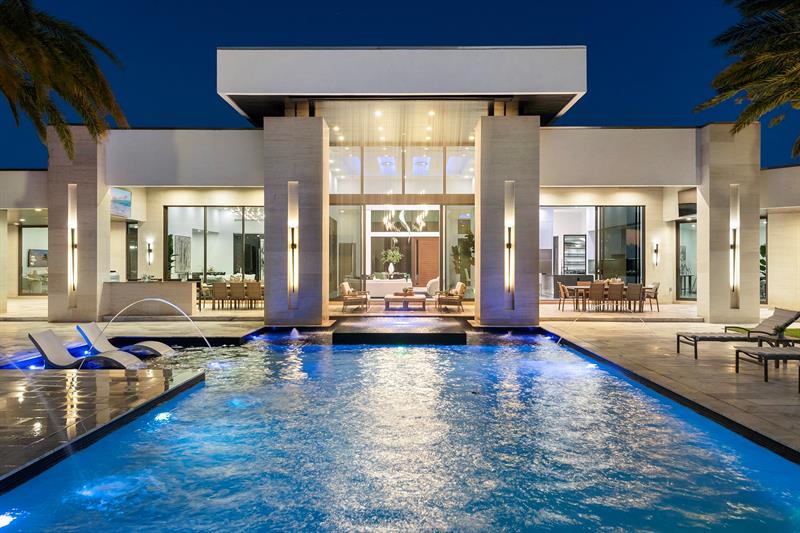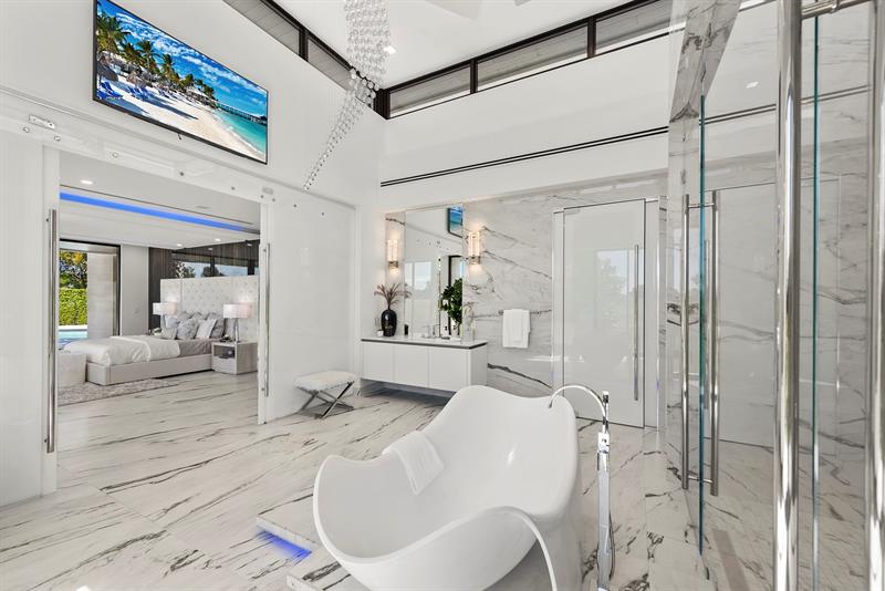 State-of-the-art custom estate, located within the prestigious Enclave at Coral Ridge Country Club in East Ft Lauderdale. This exclusive, guard-gated community of 32 homes with 24/7 manned security, ensuring ultimate seclusion & privacy while being a short distance to fine dining, shopping, 2 golf courses, the beach & private executive airport. Perfectly positioned on an oversized corner 26,580SF lot, the home ensures total privacy & tranquility. This single-story architectural masterpiece showcases soaring ceilings and walls of glass framing sweeping golf course views, seamlessly blending indoor and outdoor living. The grandeur of this custom-built home features 5BR, 6.5BA, executive office, media/club room, and an A/C 5-car garage with a stunning glass wall to inspire any car enthusiast