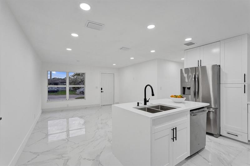 Welcome home to your magnificently remodeled 3 Bed/ 2 Bath home!! Featuring: BRAND NEW ROOF 2025, immaculate porcelain tile floors, custom kitchen w/ quartz countertops, stainless steel appliances, large master bedroom w/ en-suite bathroom, his/her walk-in closets. New electric tankless hot water heater, stackable washer/dryer, laundry sink, expansive backyard perfect for pets w/ room for pool, brand new wood fence, outdoor shed w/ ample storage, hurricane impact glass sliding back doors & much more! Location can't be beat! Excellent safe neighborhood of Playland Estates, Hollywood. Conveniently located b/w the FL Turnpike & the 95, walking distance to houses of worship, 5 mins to Hardrock Hotel and Dania Point w/ ample shopping & restaurants! Don't miss it! Make this beauty your home!