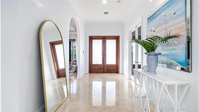 Luxury single-family home in Coral Ridge Estates within the prestigious Coral Ridge Country Club Golf Estates, one of Fort Lauderdale’s most desirable coastal communities. Just blocks from Bayview Park and the beach, this residence offers a peaceful setting moments from premier shopping, dining, and entertainment. Features include a soaring 27-ft entry, massive windows, and a striking biophilic staircase window. Custom cabinetry and refined craftsmanship are showcased throughout. The primary suite enjoys a private wing and balcony, with two laundry rooms for added convenience. Designed as a resort-style showcase home with wellness-inspired grounds, pool, and outdoor living areas. Spacious corner lot with no HOA and near top private schools. An exceptional opportunity in a coveted enclave.