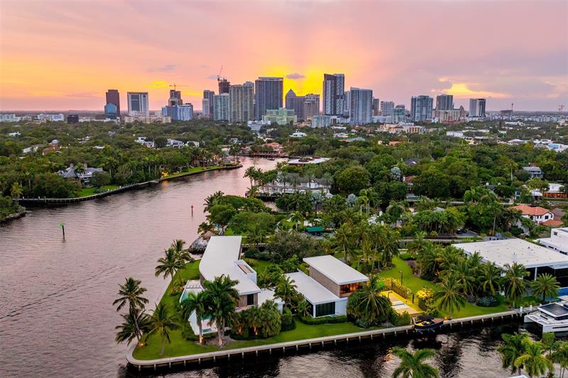 516 Mola. FTLs most unique, gated Peninsula Estate designed by renowned architect Max Strang & built by Bomar Builders, situated on 0.86 acres. Find panoramic views, a combined 640' of WF, a jaw-dropping floating Cantilever design & even a pickleball court! Notice a harmonious fusion of modern aesthetics and organic elements paired w/interior design by DKOR, crafted to complement the natural surroundings. Floor-to-ceiling windows & skylights grant natural light & Chef's Kitchen w/ hidden prep pantry w/ formal dining are perfect for entertaining. Be wowed by the Primary Suite's balcony w/New River views, gym, sitting room/office, expansive closet & spa-like bath. Home features include a full Apartment suite, movie theater, wet bar, European white oak wood floors & Savant/Lutron home system.
