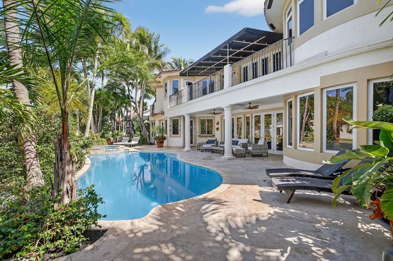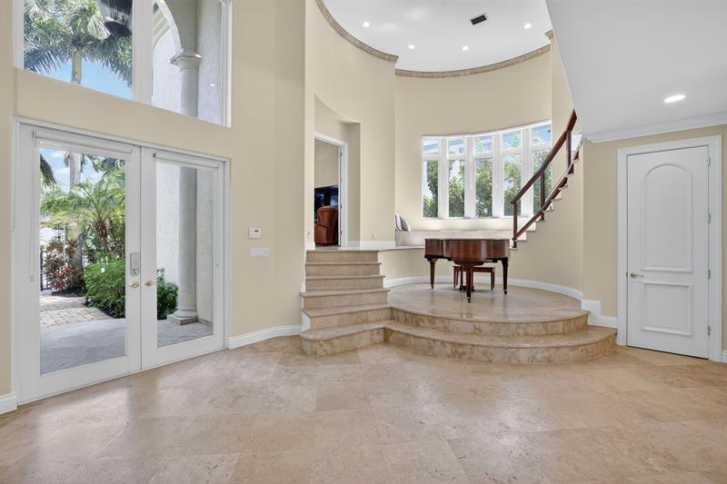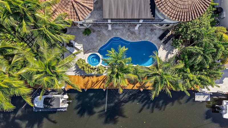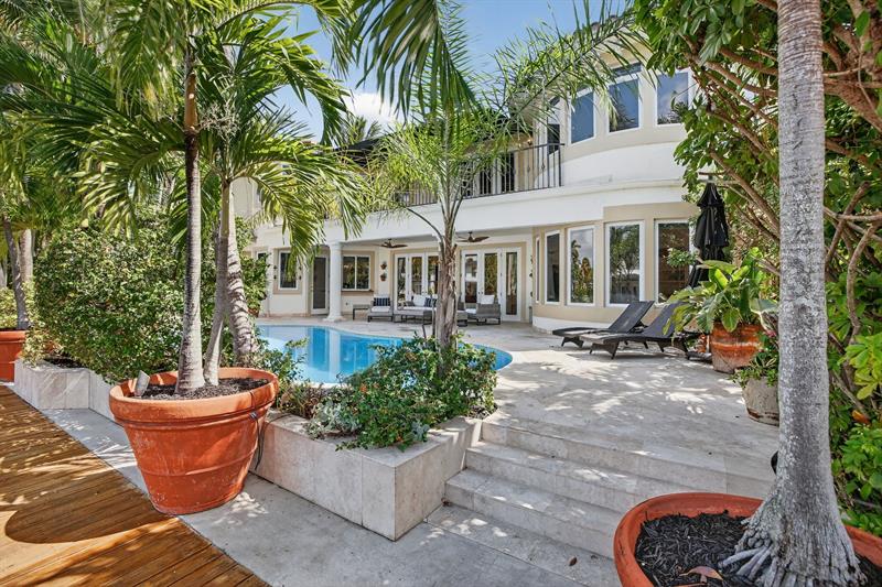 Offered below $300k of October appraised value! 100 ft deep water, walled & gated, island inspired & furnished residence has much to offer. The floor plan is exceptionally flexible with abundant natural light & great entertaining space. Enjoy 2 ground floor bedroom suites. Perfect for entertaining large kitchen/living room, adjoining formal dining room, wine cellar, formal living room with fireplace. Rotunda bar/club room or potential office. 3 bedroom suites upstairs include an extremely expansive primary suite, with private office, gym or third office, separate baths connected with honeymoon shower & large closets. Balcony access. Delightful pool area with cabana bathroom. 3 garage bays & additional guest parking driveway, all walled & gated. Private security also available on this Isle.