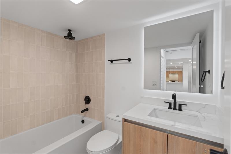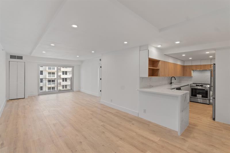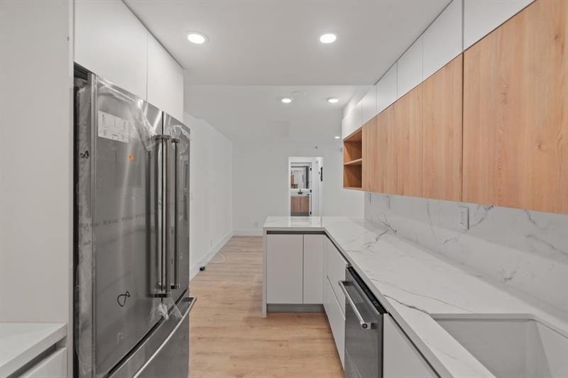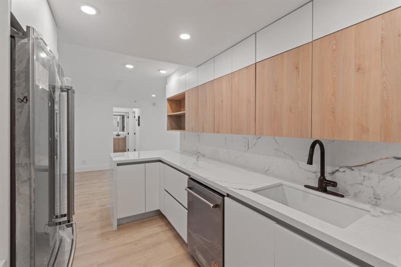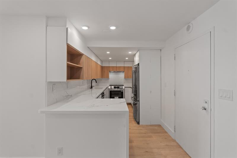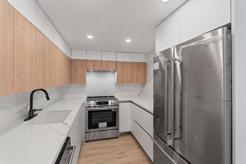 cabinetry, waterfall-edge quartz countertops, and brand-new stainless steel appliances. Enjoy panoramic