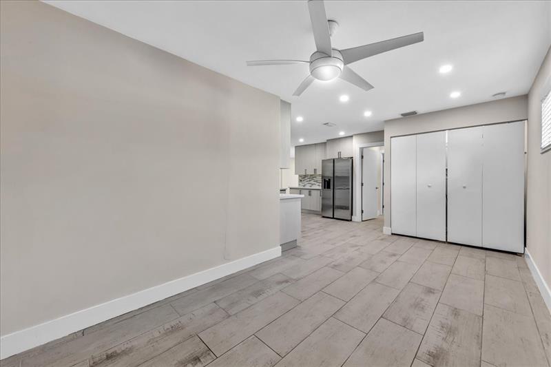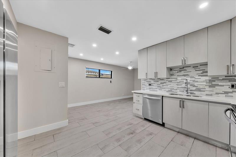 Stunning, large 5 bedrooms, 3 bathroom, in a special area, across from park, only blocks from the beach and brand new golf course! No HOA. Completely remodeled with newer roof, impact windows, tile throughout living areas and vinyl floors in bedrooms, beautiful open and large kitchen remodeled with quartz countertops, stainless steel appliances, and modern cabinets. Bathrooms upgraded with beautiful finishes. Backyard completely fenced in for privacy with 2 large storage sheds. Walking distance to the park, beach, golf, restaurants, and shops. Can't miss this beautiful home.