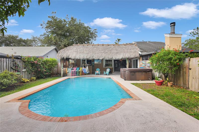 Your private oasis awaits in Rock Creek! This 3-bed, 2-bath and office/den home offers 1,993 sqft of thoughtfully designed living space on a 10,964 sqft corner lot, featuring a sparkling private pool, hot tub, and lakefront screened lanai perfect for entertaining. Enjoy evenings by the working fireplace, or host friends at your own outdoor Tiki bar. Recent upgrades include new appliances, newer AC, and brand-new gutters. Surrounded by top-rated schools, walking trails, playgrounds, and parks. All the lifestyle perks Rock Creek is known for. Move-in ready and ready for entertaining! Don’t miss your chance to make this dream home yours.