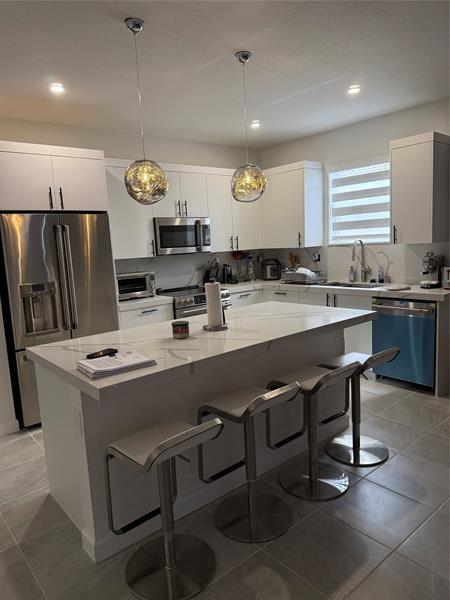with contemporary style. The upgraded kitchen features luxurious Calacatta quartz countertops. Top of the line Cafe stainless steel appliances, perfect for cooking and entertaining. Enjoy the convenience of a brand new well for the sprinkler system ensuring lush landscaping year-round. Designed with open living spaces. All tile flooring, and abundant natural light. This home delivers the perfect combination of elegance and functionality. Located in a growing community. Close to shopping and dining.