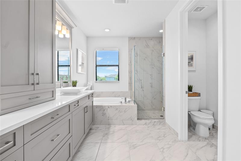 PRICED TO SELL! Why wait for new construction when you can have it all today? This barely lived-in, lakefront pool home in Villamar at Toscana Isles feels brand new. Set on a premium corner lot with $200K+ in upgrades including impact windows & doors, wide-plank hardwood floors, tankless water heater, whole-home water filtration with Kinetico drinking water fountain, Energy Star appliances, and more. Spacious primary bedroom with two custom walk-in closets and spa-like bath featuring glass-enclosed shower, Roman tub, dual sinks, and premium finishes. New private heated saltwater pool & spa with breathtaking lake views. Gated community with resort-style amenities, minutes to shopping, dining, beaches, golf, top schools, highways & airports. Move-in ready; schedule your showing today!