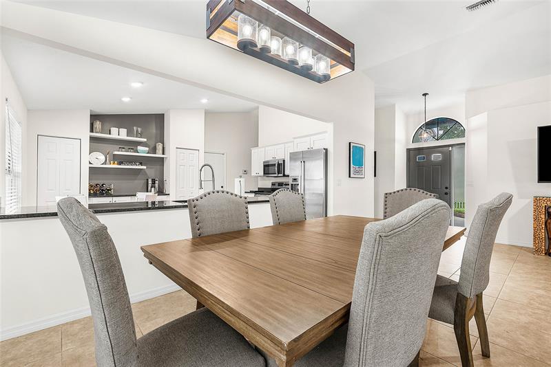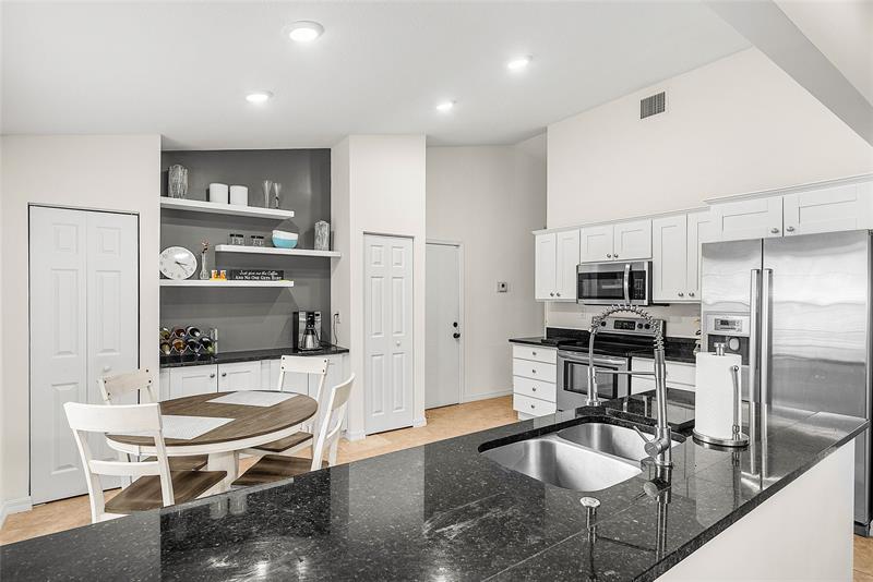 Welcome to this beautifully maintained home tucked on a cul-de-sac within a manned-gated community. The exterior was freshly painted in 2025 and boasts golf course views. Thoughtfully updated and move-in ready, this single-story residence pairs timeless design with modern comfort. The 2023-updated kitchen features a built-in bar, double pantries, and sleek finishes, perfect for entertaining. The primary suite includes a renovated bathroom (2023), while large windows capture golf course views that create a serene backdrop - without the buy-in! Additional highlights include new gutters (2022), water heater (2021), A/C (2015), roof (2013), interior paint (2023). Enjoy the best of Florida living in a secure, gated setting close to top-rated schools, shopping, dining, and recreation