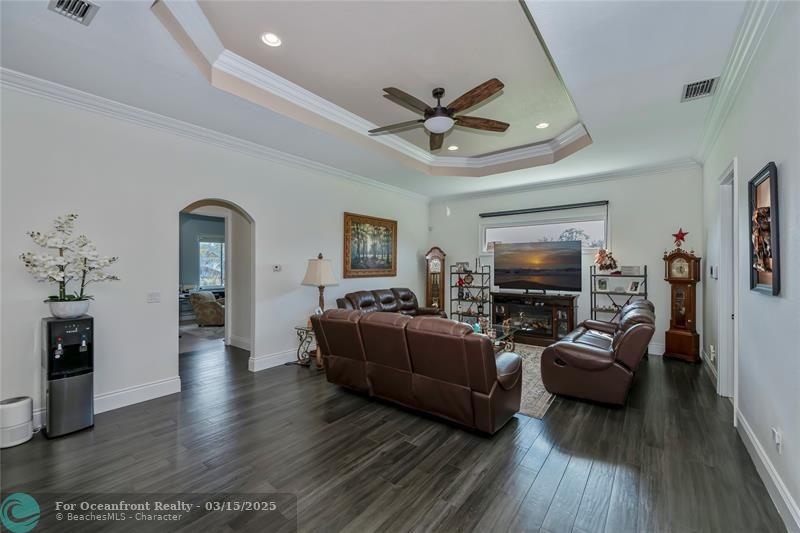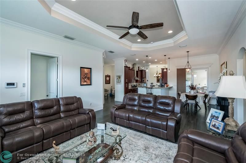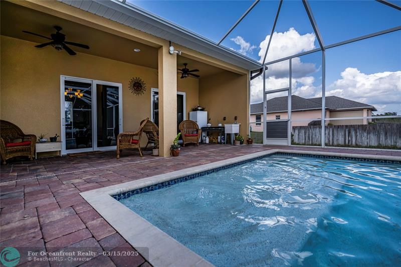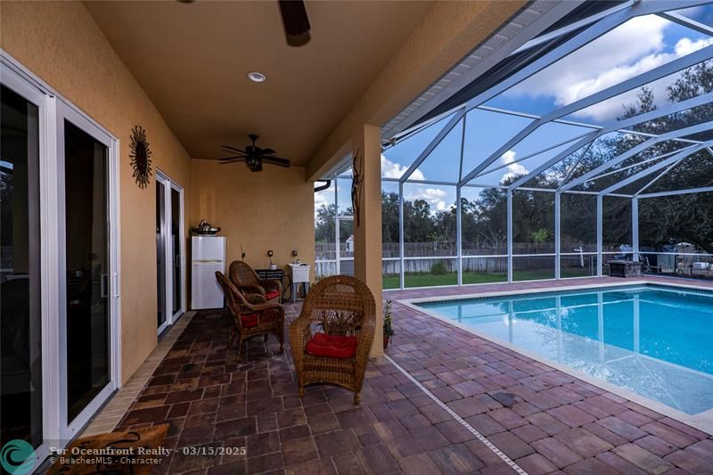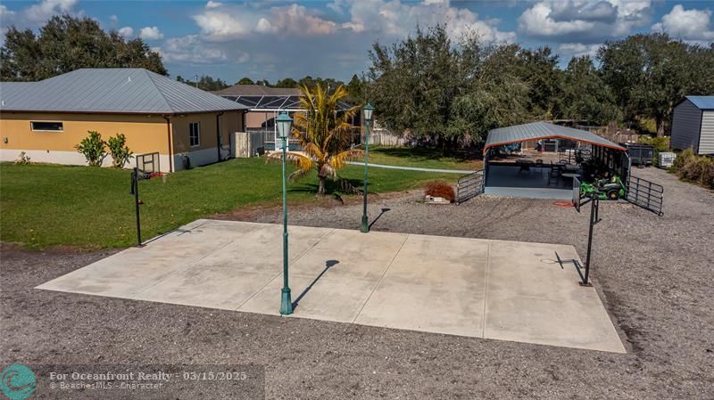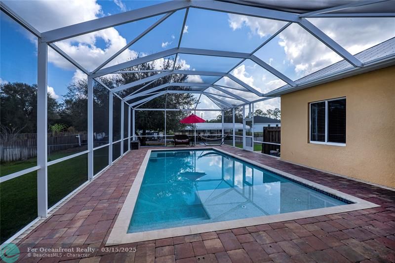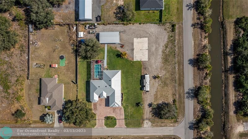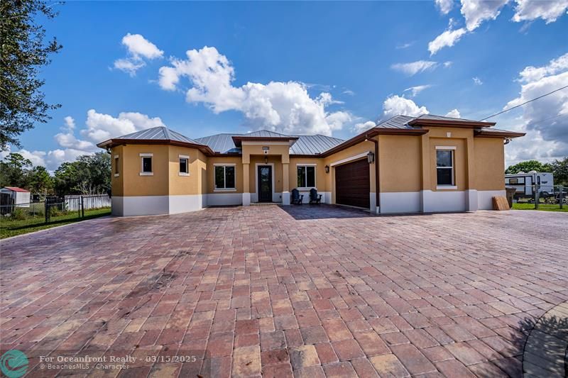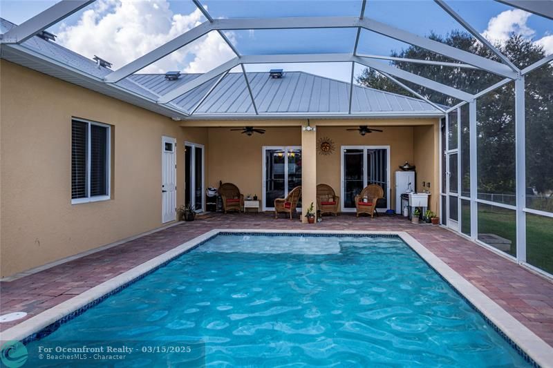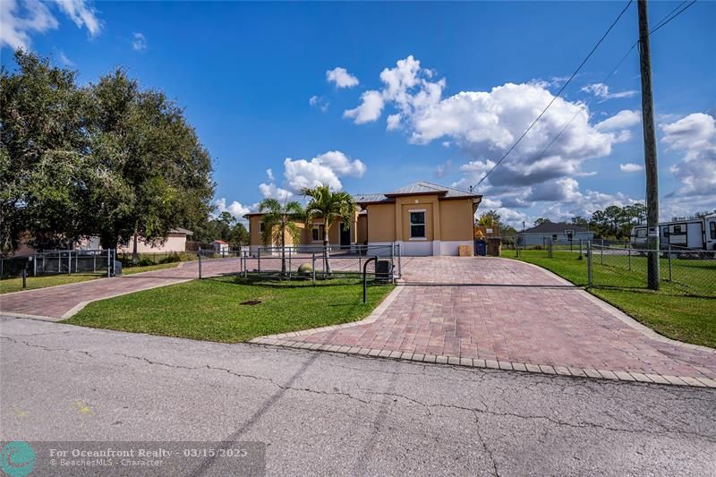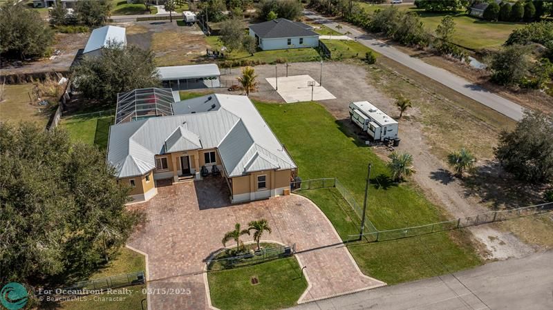 Beautiful Costume Pool Home on corner 1 acre lot, 3 bedrooms + den/office, 2.5 bathrooms, 2 car garage, Custom wood cabinets, granite countertops, 10'8'' ceilings with 8'' crown molding, ceiling fans, costume light fixtures, spacious Livingroom, tile throughout, 7'' baseboards, coffered ceilings in master and living room, his and hers vanity, his and hers closet, spacious laundry room with plenty of storage, lanai, 15*30 pool, impact windows and doors, METAL ROOF! Stainless steel appliances, plenty of parking space on oversize paved driveway, high speed internet available, double circular driveway with electric gates and keypads, property is fence, 20'*40' carport with space for 4 cars, concrete slab set with 2 basketball hoops and lighting. House is wire with cameras and security system.