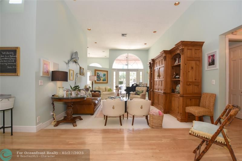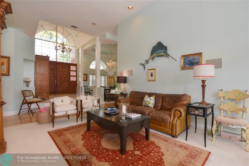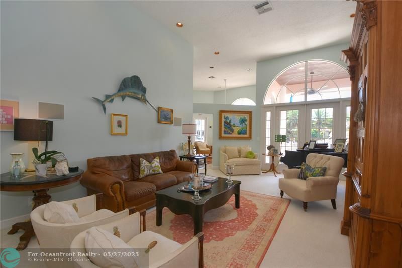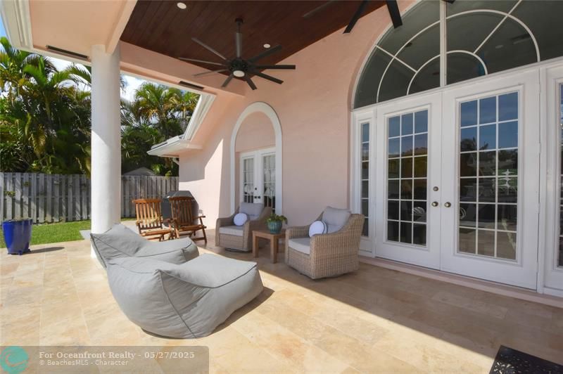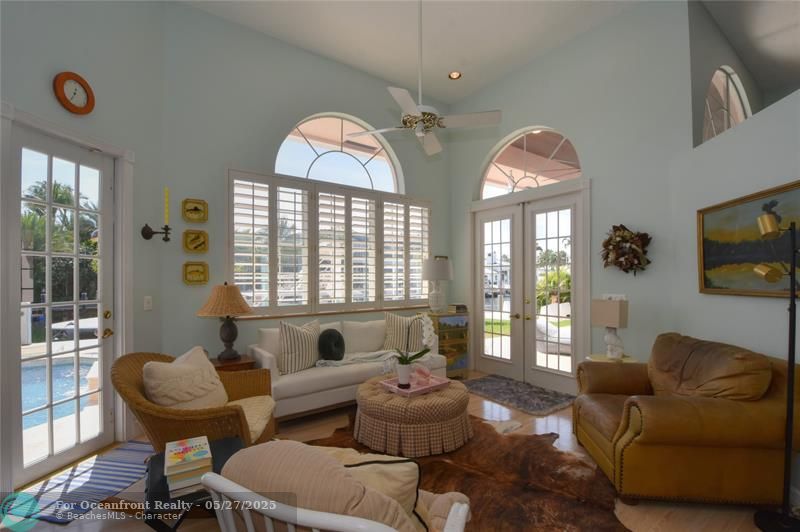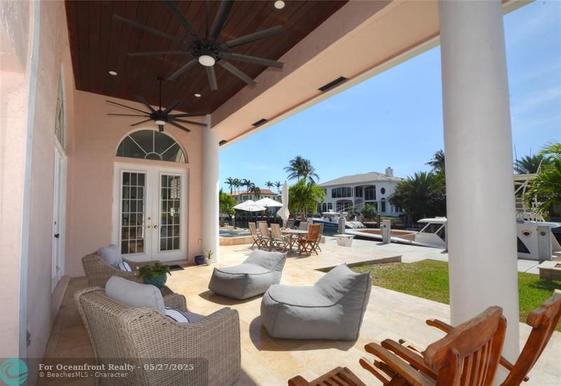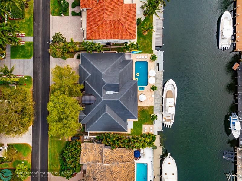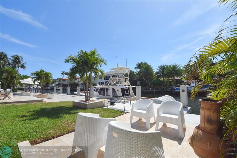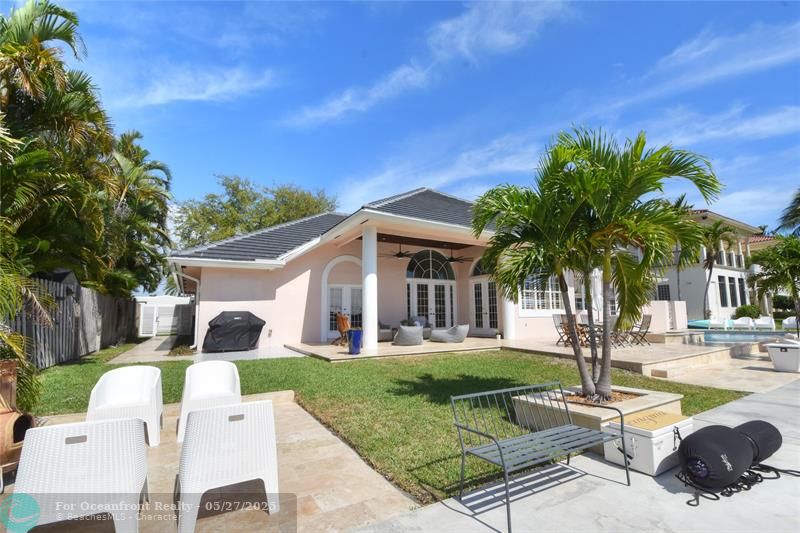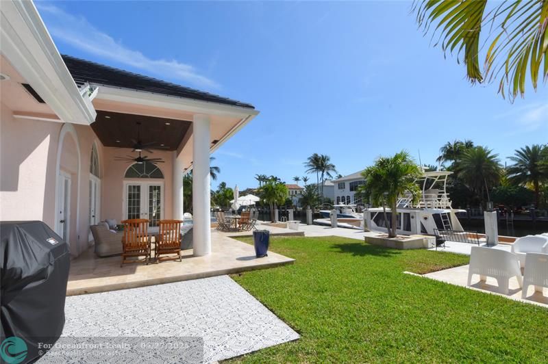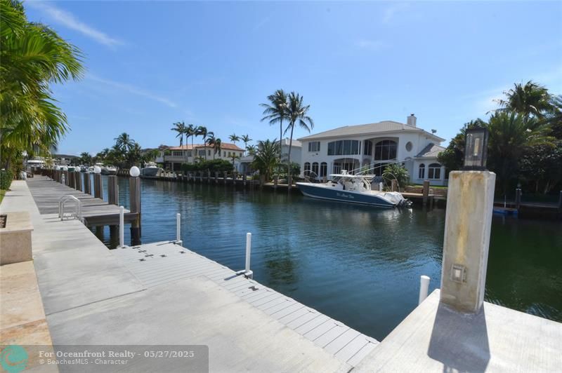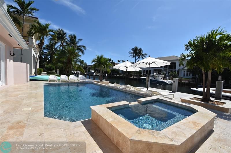 Boater’s paradise! This stunning one-story waterfront home offers 4 beds, 4.5 baths, and 3,300 sq ft of luxury living. A grand foyer, vaulted ceilings and an open-concept layout flow seamlessly to the outdoors. Boasting 100' feet of ocean-access frontage NEW concrete dock & sea-wall, 30' floating dock, and upgraded power—perfect for your yacht. Entertain by the resort-style Diamond Brite pool with travertine marble deck, wood paneled ceiling patio. The chef’s kitchen dazzles with Bosch & Sub-Zero appliances, island with bar seating, and sleek design. The spacious primary suite boasts custom built-ins, jetted tub, dual vanities, and a newly tiled cabana bath. Plus: 3-car garage and new tile roof (2024). Coastal luxury at its finest—bring your boat and live the dream!